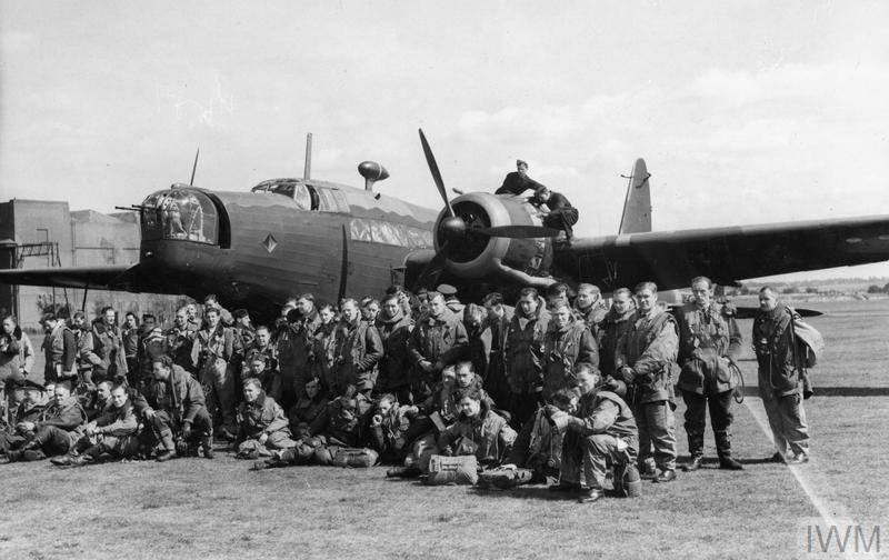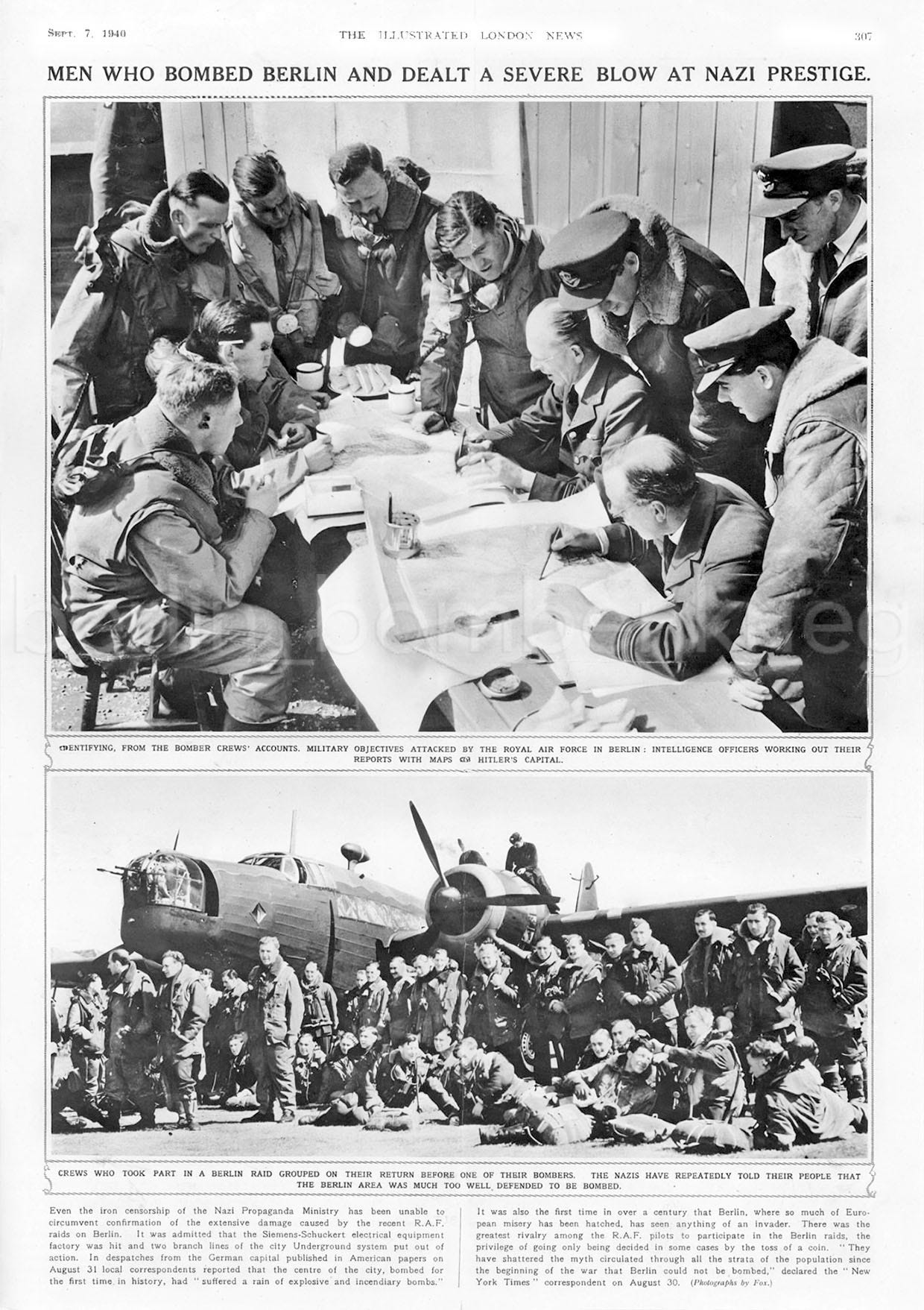 In the act took part No 115 and No 38 Squadrons’ crews, two of the six operational units flying the Vickers Wellington Mk 1C in No 3 Group. Both units were based at the time at RAF Marham air station, in Norfolk. At 12.00 hrs under blue skies, pilots and crews who went on the Berlin raid were photographed and filmed by Movietone News and Fox Photos recreating for the cameras their landing back from the previous night attack, with their Wellington medium bombers, studying maps relaxed and the post-strike debriefing with an intelligence officer. This of course was very far from war reality, tragically and deadly different.