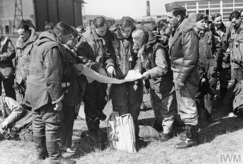 Also, British Pathé recorded the event in film too, seen later on cinema screens on Movietone News, entitled “With The Air Force - Back From Berlin”, this morale-booster footage shows the Squadron crews recreating a post-strike debriefing. Martin Pathé sent a telegram to Wing Commander Thomson, OC No 38 Squadron, RAF Marham, to advise him when the film is to be released locally. [Video credit: © British Pathé (FILM ID:1055.27).]