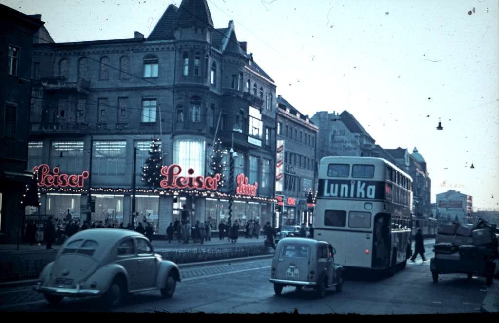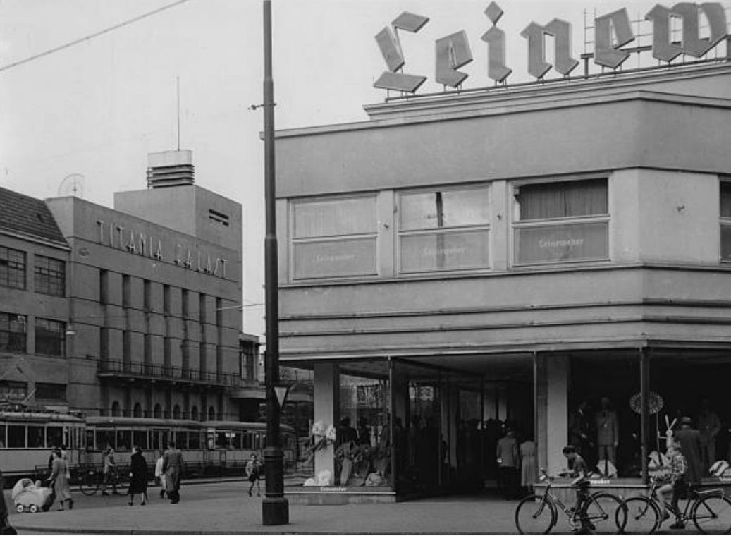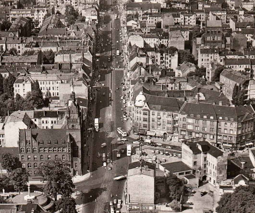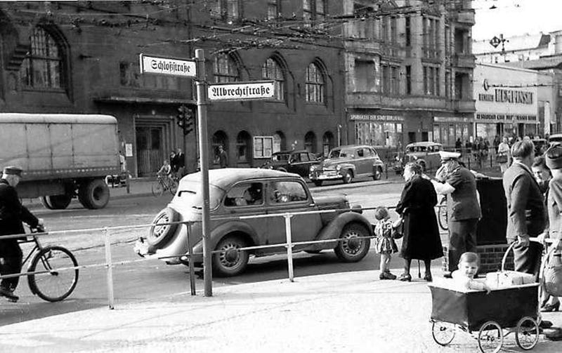 After the end of the Second World War and with the Iron Curtain already instaured, and the subsequent division of the city into four sectors, Berlin Steglitz continued its reconstruction work as an essential part of the US occupation zone. But that effort and money went principally to the main artery of the suburb’s life, Schloßstraße and its surrounding area. With streets cleared of rubble stores, groceries, markets and cinemas reopened and a new commercial life sponsored by the American giant glow on the great avenue that crosses that district from north to south with the red Rathaus building as an a iconic.