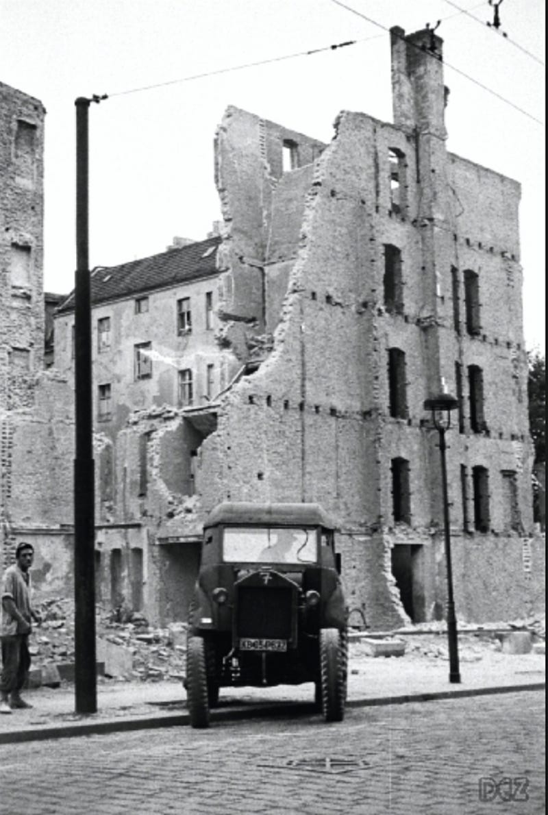However, in the adjacent streets there were still images of destruction until well into the 50s with rubble and ruins, remains of the Bombenkrieg past. Here, Two scenes of ruined buildings in Steglitz, probably Markelstraße in 1952.