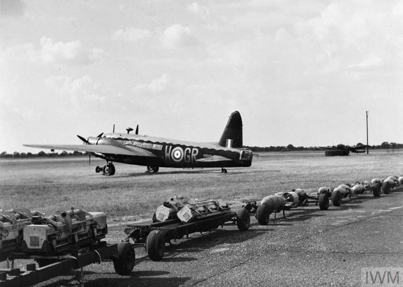 Handley Page Halifaxes usually carried the main bulk of incendiary bomb load on Bomber Command missions, so when they’re hold on reserve after high losses over Berlin in Fall 1943 the British offensive lost a high percent of fire destruction.