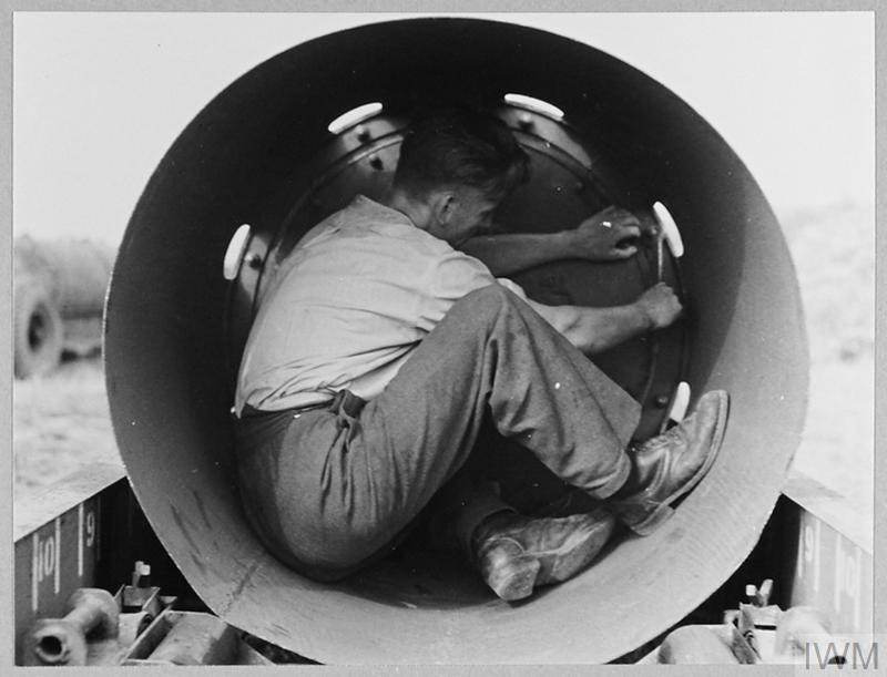 In 1942, a larger version of the blast bomb was developed by joining together two 4,000-lb HC bomb sections, creating the 8,000-lb High Capacity bomb (‘super cookie’) which although similar in design to the standard ‘Cookie’ were actually shorter in length and of larger diameter, so even the Lancaster bomber had to be modified to carry this weapon (bulged bay-bomb doors).