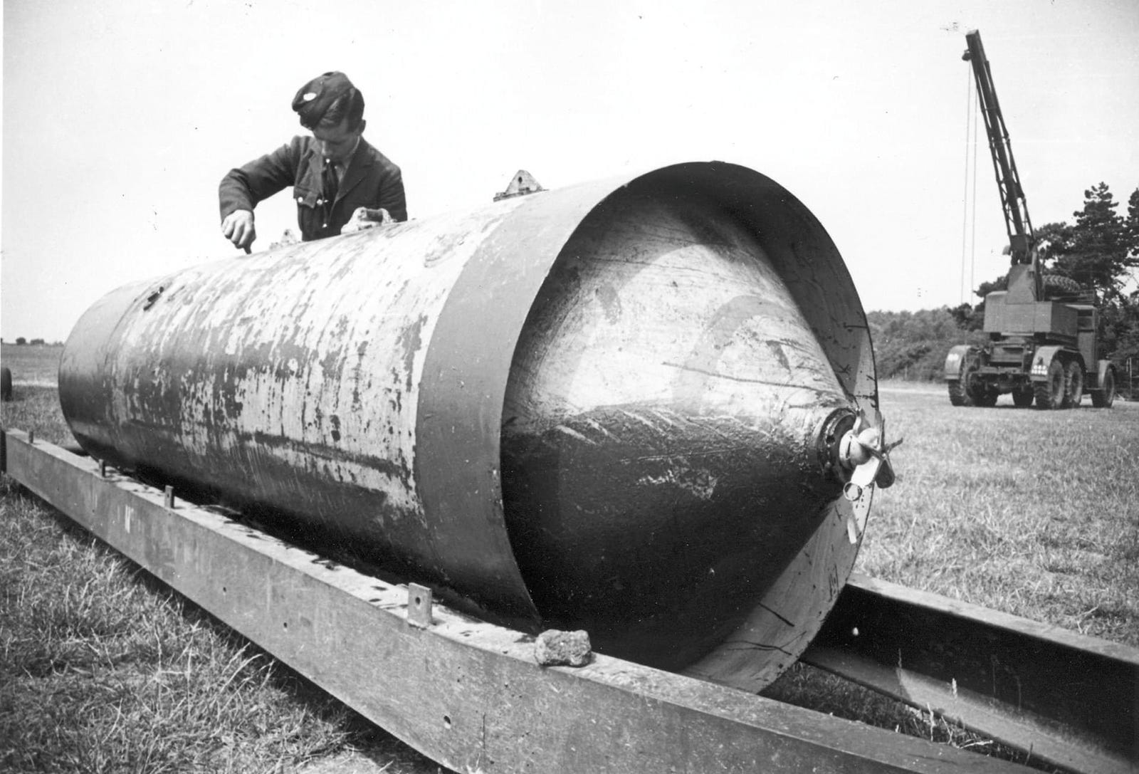 The number dropped from a 194 figure in the year 1941 to a max point of 16,227 in 1944. Following development of larger bombs, this type was redesigned at the Command’s request and incorporated the use of a ballistic tall unit. The new variant became available for use in August of 1942 and remained a part of the RAF general inventory throughout the remainder of the conflict. A total of 28,633 of these weapons were dropped by Bomber Command during the war.