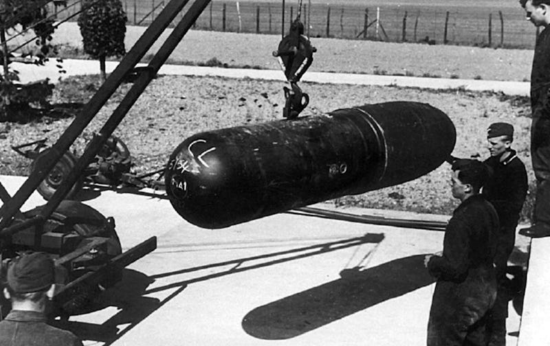 But this weapon was rarely used against targets like cities, they were primarily reserved to special precision targets or factories. First use of this bomb was on September 14, 1943, when No 617 Sqn attacked the heavily defended Dortmund-Ems Canal. Just 193 of these big-size bombs were dropped by RAF Bomber Command during the war, most of them expended by the ‘special’ No 617 Squadron with not much success.