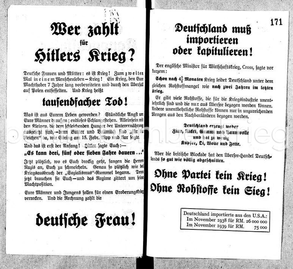 The raiders dropped more than explosives and incendiaries on Berlin: hundreds of ‘Nickels’ —the British codename for leaflets— fell on the city during the attack. On it, the population of Berlin was requested to realize the futility of the Nazi cause with propaganda messages in German text like “the war which Hitler started will go on, and it will last as long as Hitler does” a straight proclamation headed by “Berliners, Do You Comprehend Now?”. A list of targets in Germany bombed by the RAF in the previous weeks was listed too and also some statistics of the war progress comparing British resources to those of Germany and proclaiming the overwhelming power of the British Empire.18