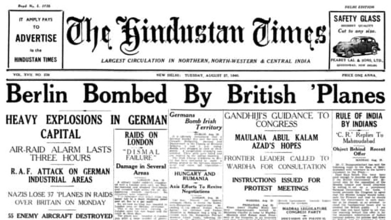 The Guardian, Tuesday, August 27, 1940; The Times’s aeronautical correspondent cautioned that: ‘It should not be imagined for a moment that Sunday night’s raids on the outskirts of Berlin were intended as a “tit-for-tat” reprisal for the indiscriminate bombing of London during the week-end. Whereas the German aircraft jettisoned their bombs with little or no regard for direction or what they were going to hit, the R.A.F. raids were directed against definite military objectives, which had been singled out for attack some time before.’ Tuesday, 27 August 1940. Airminded; The Hindustian Times, Tuesday, August 27, 1940