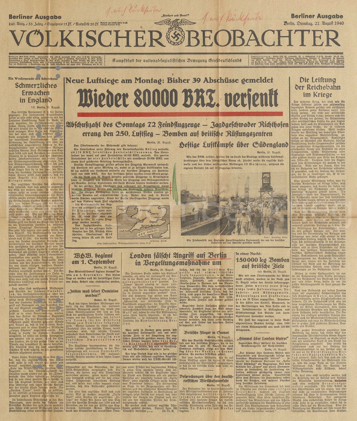 see LAB, A Rep. 001-02, Nr. 700, Bl. 2 f; Daily Mirror, Tuesday, August 27, 1940