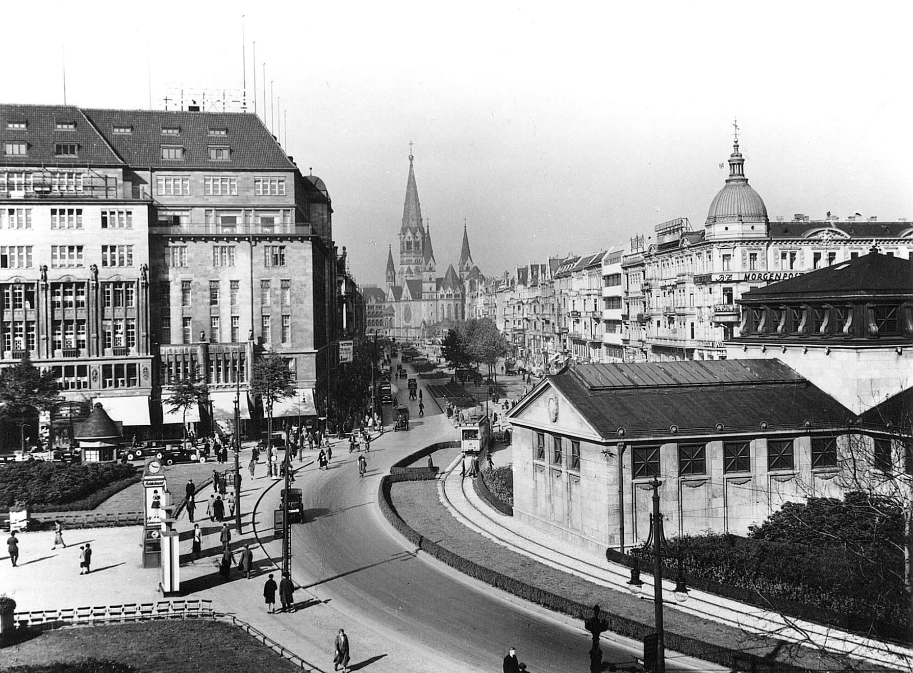 The Kaufhaus des Westens („KaDeWe“ for short or Department Store of the West), the majestic department store located at Tauentzienstraße 21-24 next to Wittenbergplatz, was the adventurous idea by Berlin businessman Adolf Jandorf. Designed by architect Johann Emil Schaudt, when the store opened its doors on March 27, 1907, it was a massive building with five floors and 26,400 square meters, which immediately had an impact on its surroundings transforming the street into a shopping area. Acquired by the Hertie-Konzern in 1927, the KaDeWe was expropriated by the Nazi regime in 1933, just after it had been expanded into a six-story building with 40,000 square meters, the largest department store in continental Europe at the time.29
