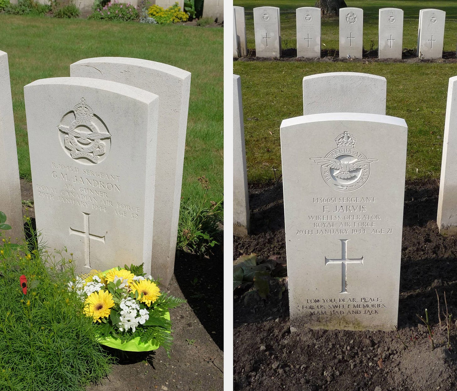 - Sgt Geoffrey M Jandron, RCAF, aged 32, from Quebec region, Canada, Air Gunner.