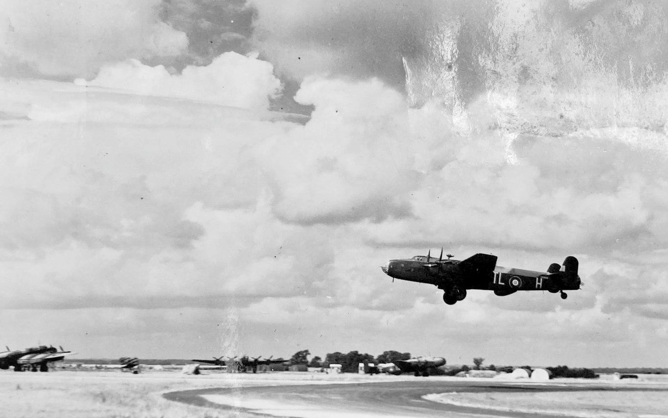 Minutes later, after taxiing in and wait for their turn to take off, Duncan opened the throttle and the four 1,280 hp Rolls-Royce engines roared, the bomber lifting off Elvington’s runway at 00.07 hours13 in complete darkness and radio silence. The pilot circled the airfield to gain height before turning on to a heading across the North Sea. No one would see them alive again.