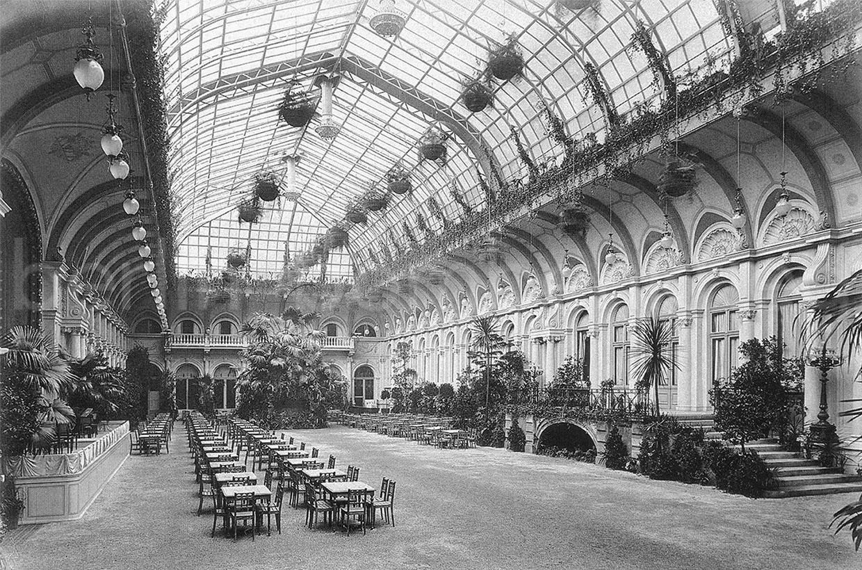 Owned by Hermann Gebers, this important theatre located north of the Unter den Linden boulevard opened originally as a recreational hall part of one of the most iconic hotels in the Berlin-Mitte district: the Central-Hotel (built in 1877-78). The large and cosmopolitan hotel, located very close to the Friedrichstraße Bahnhof (known then as the ‘Central train station’) and similar to London and Paris neo-Renaissance and luxury-style hotels of the time, runned almost 100 meters long from the Dorotheenstraße corner to Georgenstr. In the inner courtyard, the hotel had a palm garden with a glass roof and vaulted ceiling dome, a place for guests to relax and for music concerts (a winter garten, quite popular in Wilhelmine Germany) as well as a café-restaurant.