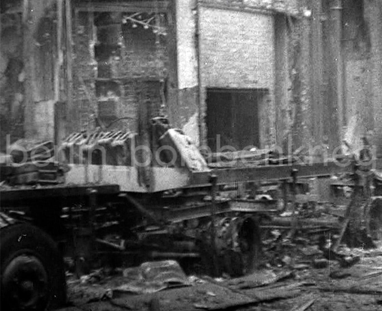 Further damage was inflicted during the Soviet armies’ assault on the Third Reich’s capital in late April-May 1945. Howitzer shells, bomb splinters and small-arms fire added more rubble to an already ruined spot, located a few blocks away from the Reich’s Chancellery, one of the main targets of the assaulting Red troops. Surviving pictures show that heavy street-fighting took place all over the Friedrichstraße, one of the several breakout attempts by the last survivors of the bunker started next to the Wintergarten, with around thirty vehicles (with ‘Nordland’ SS troops and numerous civilians) trying to escape northwards across the Spree at the height of Friedrichstraße and the Weidendammebrücke, which left the area full of wrecks and dead bodies on the night of May 1/2. Finally, on the next morning the German garrison surrendered to the Red Army: the war in Berlin was over.