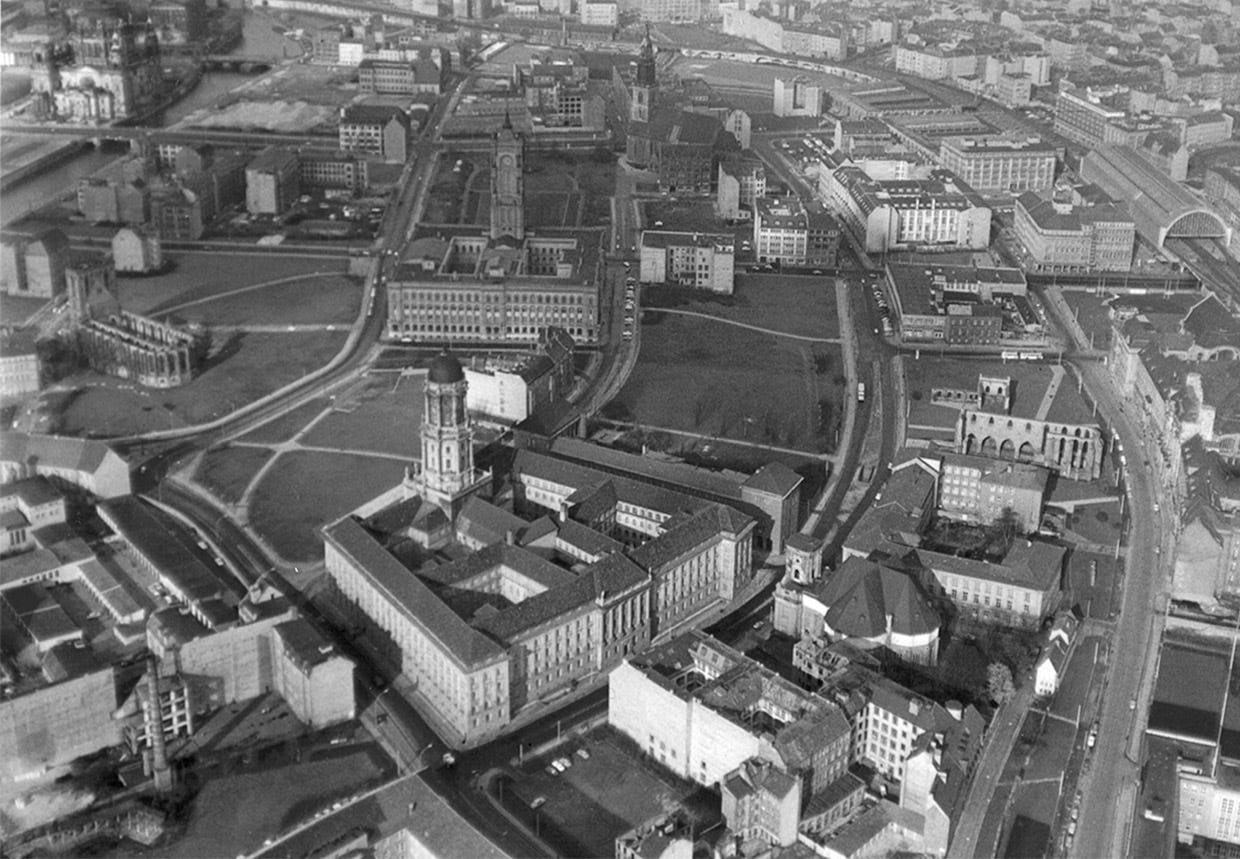 The Allied bombing of the city centre during World War II severely damaged the buildings of the monastery quarter at Molkenmarkt. Most of them were completely demolished and cleared of rubble after 1945 and transferred to municipal ownership.