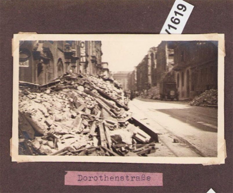 Not far from there is this view of Dorotheenstraße full of rubble and debris, another picture taken in 1944 and auctioned by the same seller too.