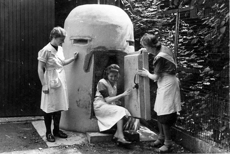 In September 1940, just before the Führer Sofortprogram to build air-shelters, Siemens made a report about the protection offered by these tiny shelters during recent air-raids on Berlin and to establish the proper size and weight to design and built a BWS. It established the cost of one of them at approx 430-450 RM. They were widely used by the Wehrmacht in barracks, facilities and watch posts, the Deutsche Reichsbahn (DRB) in their railway system and train stations and civilian companies at their factories.