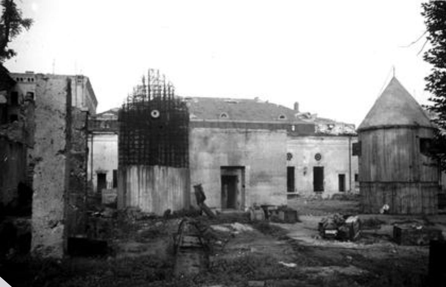 Also, a few metres away from that pillbox two huge Beobachtungsturme towers were built, next to the rear emergency exit of the Führer’s bunker. In the pictures can be seen that they were not exactly BWS or SSZ, due to its big size (more than double of the already described) and different construction method, but was their role the same?: to protect the SS guards of the complex from the air-bombings? watch towers? One of these towers was still under construction -maybe the two- when the war ended and it is believed that they served as air ventilation for the subterranean complex too.