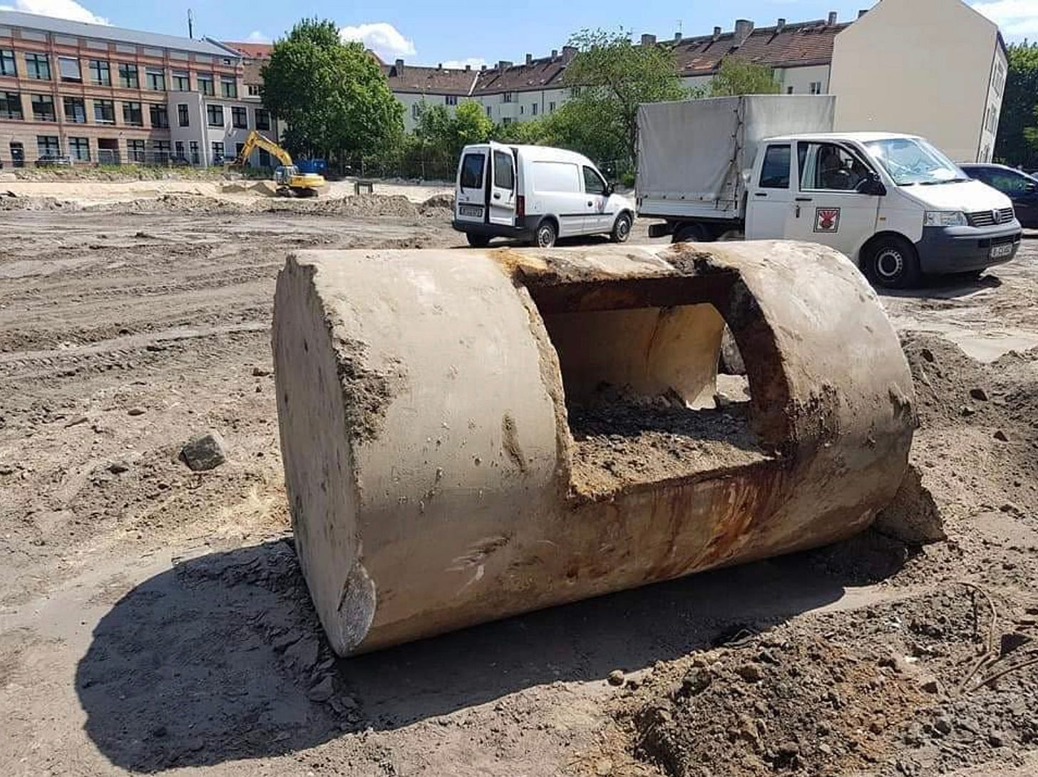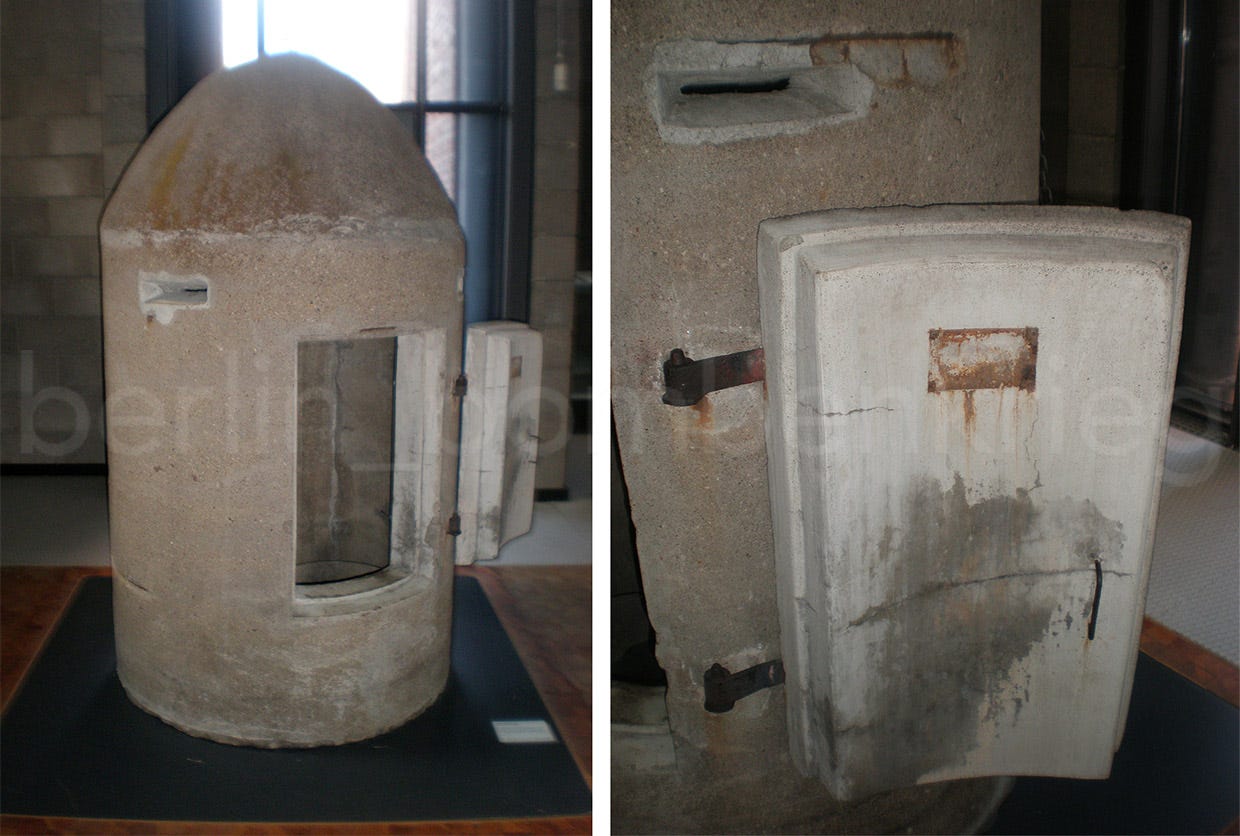 Today, there are several relics from Second World War of this type in the Berlin area, some of them can be visited. The most widely known are the two SSZs located next to the U-Bhf Gesundbrunnen to point the office of the highly recommended association and subterranean world tours “Berliner Unterwelten” (Brunnenstraße 108, Berlin-Humboldthain). These shelters came from Frohnau in 2003 and are of an unknown type, probably built by Engel & Leonhardt Betonwerk. Another one at the city is the one displayed at the Deutsches Technikmuseum in Kreuzberg (of Westermann & Co Betonwerk design) at their Luftfahrt stage next to an RAF Lancaster wreck and some bombs.