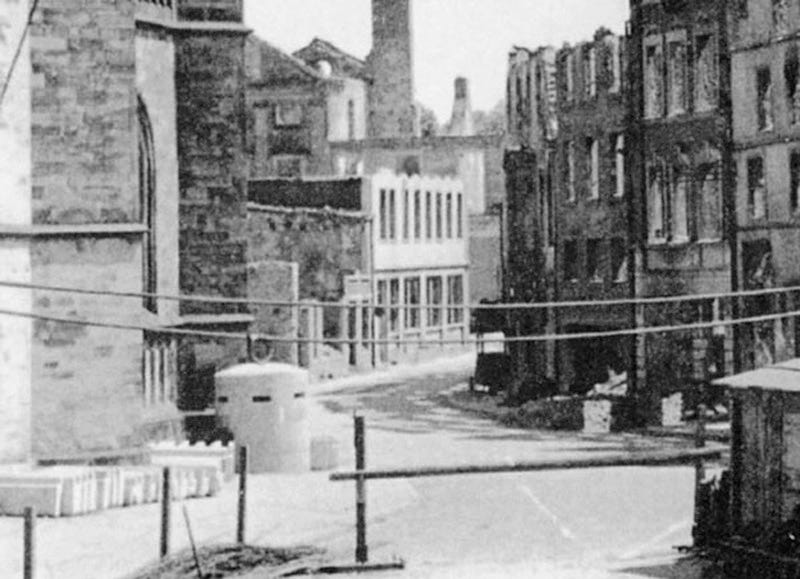 The other picture which shows a BWS at Berlin was a post-war scene too, taken in summer 1948 at Levetzowstraße Ecke Zinzendorfstr, in Tiergarten district between ruins and rubble. Demolishing work has exposed this Einmannbunker (extreme left) surrounded by gutted buildings, a remnant of the war left intact in what must have been a private court or a small workshop. German authorities allowed the people to acquire a SSZ and set it up on their own private property.