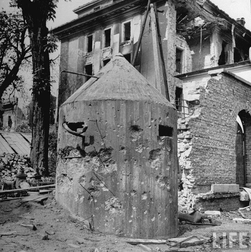 The other place is one of the most interesting places of the Battle of Berlin topic, Hitler’s Chancellery complex at Voßstraße. Photos show that in the back garden of the Reichskanzlei was a cone-shaped small structure, next to the wall that divided the garden from Haus Kempka (Hitler’s chauffeur), very similar to a SSZ but it is not entirely confirmed if this was a pillbox or a small ventilation tower for the underground new Führerbunker, built there in 1944 by the Hochtief AG.