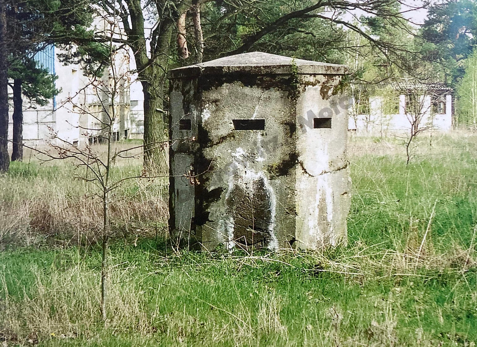Author James P. O’Donnell states in his book “The Berlin Bunker” (p 262) that Sergeant Erich Mansfield, a guard of the FBK (Führerbegleitkommando), “was stationed in a camouflaged cement watchtower in the Chancellery garden”, and on the US report on July 30, 1945 from Mansfeld interrogation after being captured was noted that “[Mansfeld was] on duty at the guard station in the bunker’s concrete tower”. Whatever they were for without any doubt were developed from the one-man bunker concept. The bunker and the structures were blown up and demolished in 1947 and 1959.
