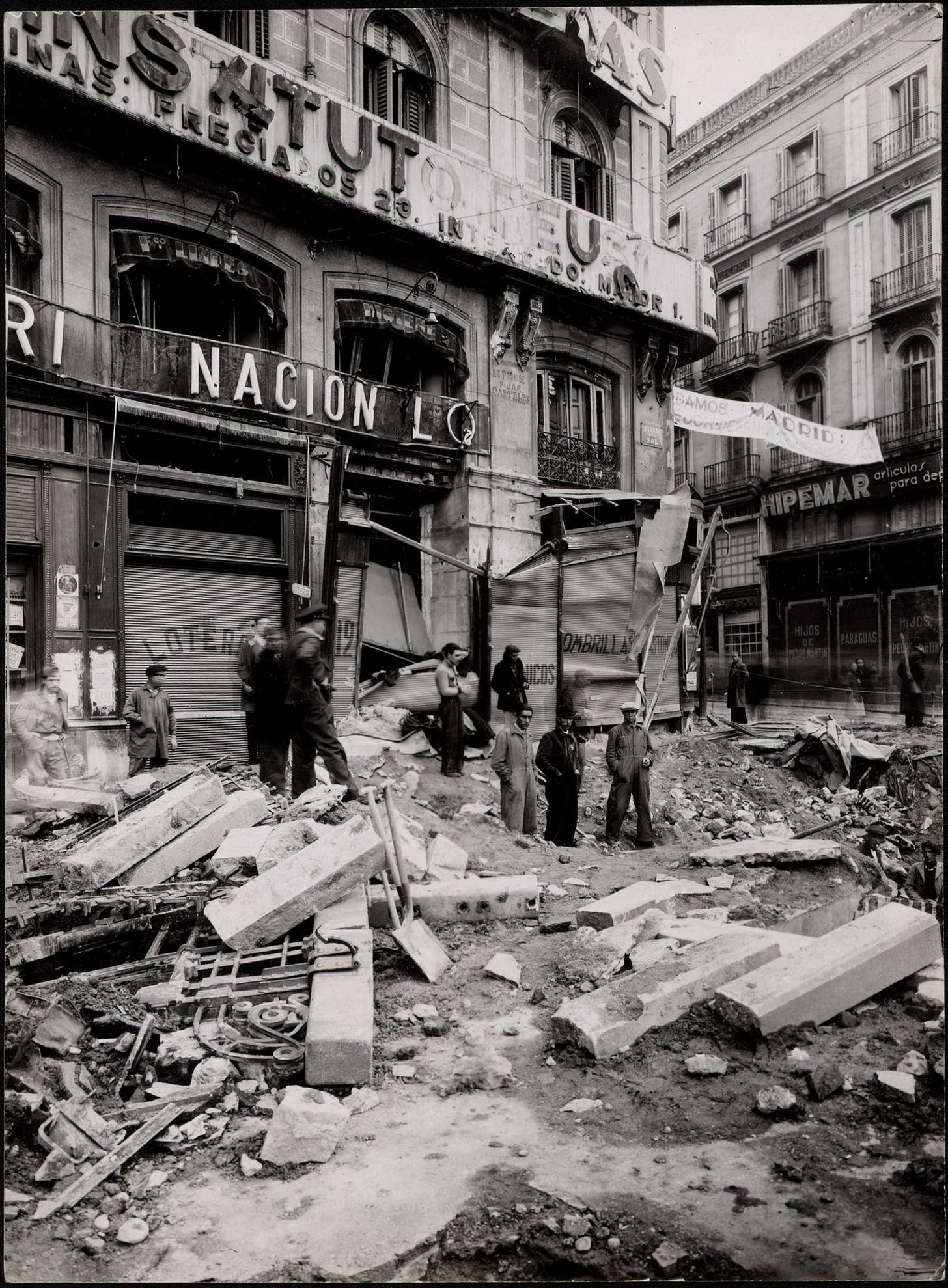 It is the first time that a map has been referenced and documented of each street and building in Madrid that suffered damage by bombing during the Spanish Civil War, whether artillery or aviation bomb, from the archives, photographs of impacts and testimonies from Madrid citizens, and especially the Fire Department work (Juan Miguel Redondo Toral). This is a great initiative that other cities such as London already have, which should have been done a long time ago, to try not to forget that Madrid was the first city in history to suffer a modern bombing campaign (apart from London in 1917) and served as an experiment for Luftwaffe and Mussolini’s Regia Aeronautica to learn how to bomb a large metropolis in an strategic role.