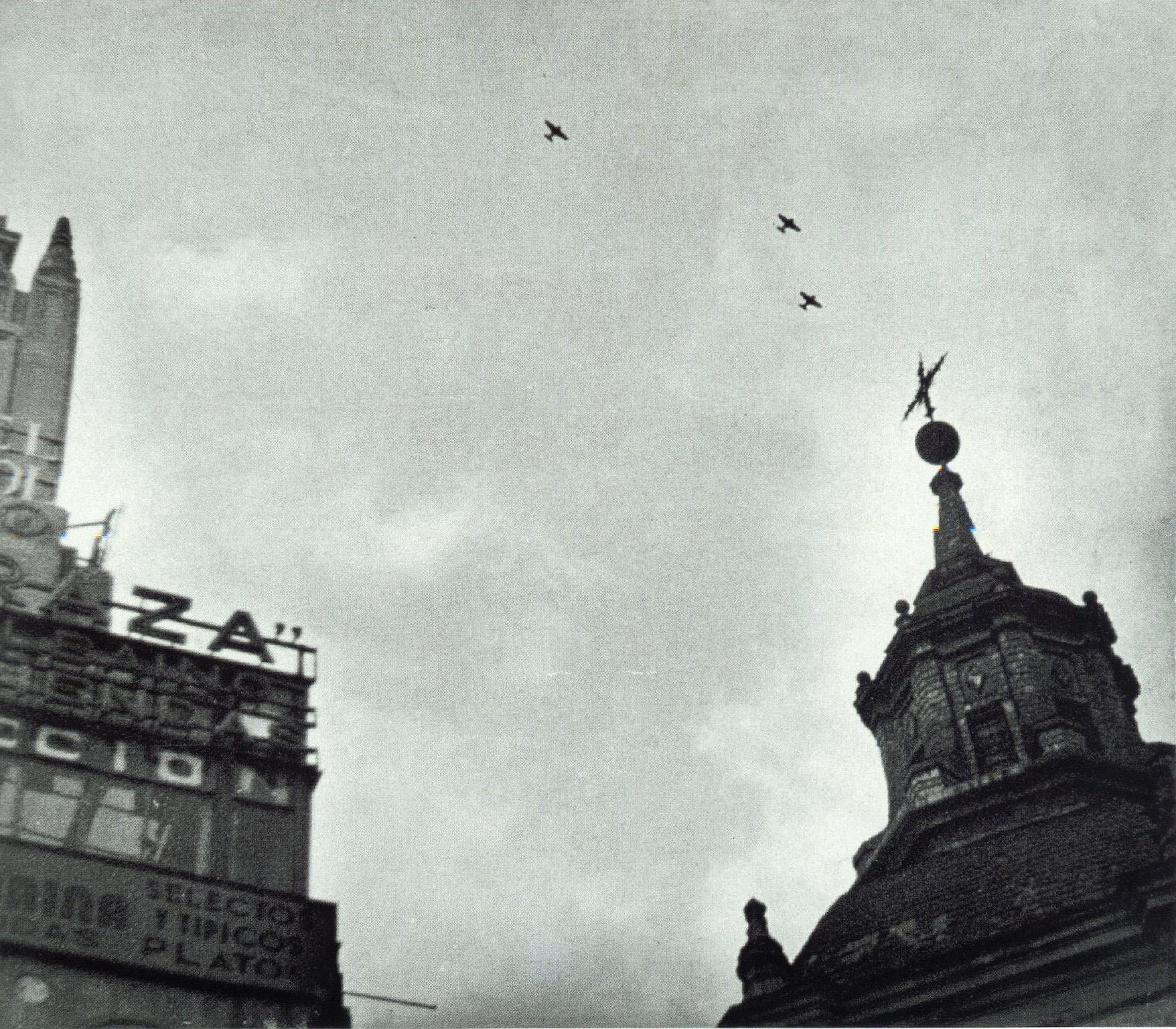During November and part of December of 1936 Madrid was raided every day and every night by Franco’s aviation, with German and Italian crews and planes. Simultaneously, and during the rest of the war, howitzers and guns from the nearby front line at Casa de Campo, shells every morning civilian areas like Gran Via avenue, causing numerous victims. Madrid was followed from the summer of 1937 by Barcelona, Alicante, Sagunto…