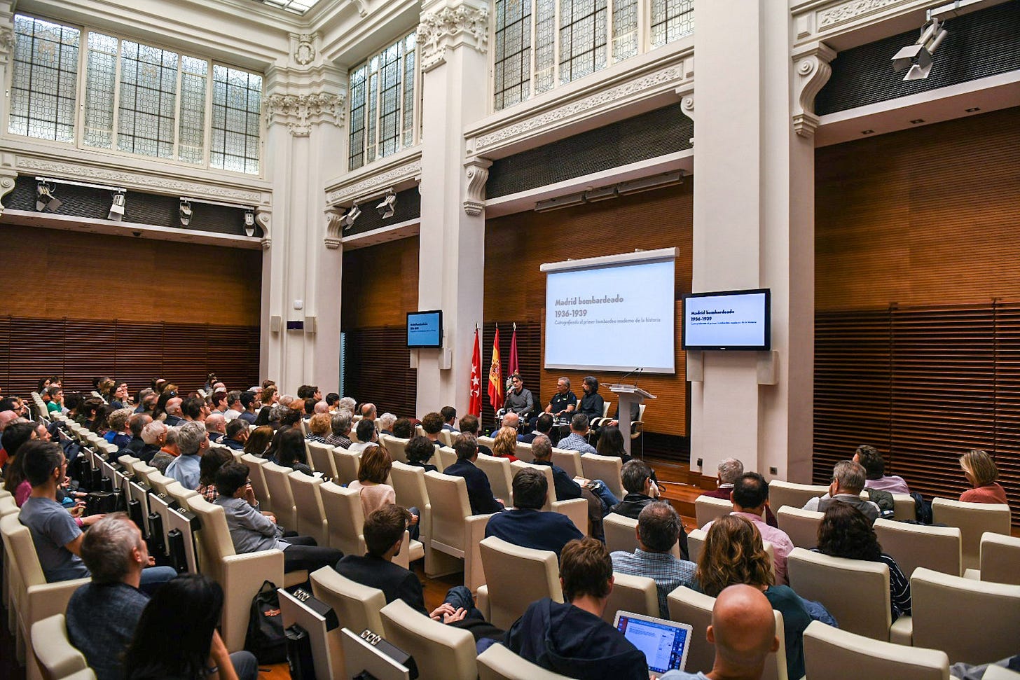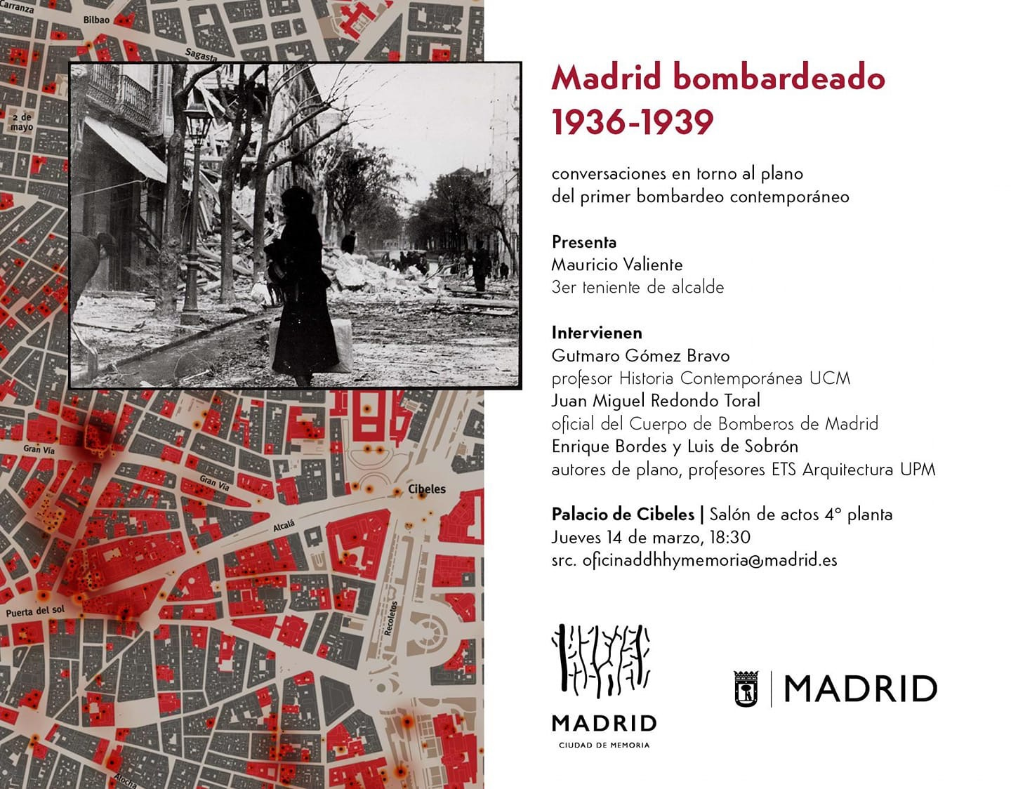 Yesterday I had the honour to assist to the presentation of the map of “Madrid bombardeado. 1936-1939”, an initiative of the architects Enrique Bordes and Luis de Sobrón (@madrid1936_1939) of the UPM Universidad Politécnica de Madrid with the collaboration of the Madrid city council.
