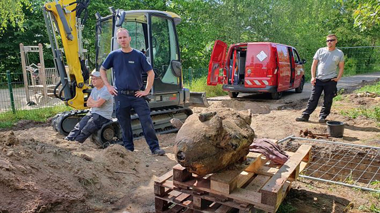 An unexploded aerial bomb was discovered during construction work in Berlin-Teltow (Potsdam-Mittelmark) last Monday (May 19, 2025). The American 250 kg ‘dud’ found (as unexploded bombs are known) has been successfully defused yesterday afternoon by an KMBD (Kampfmittelbeseitigungsdienst) team, which reported to be a troublesome activity due to the bad shape and jamming of the explosive-fuse, taking more than an hour to be deactivated and safe.