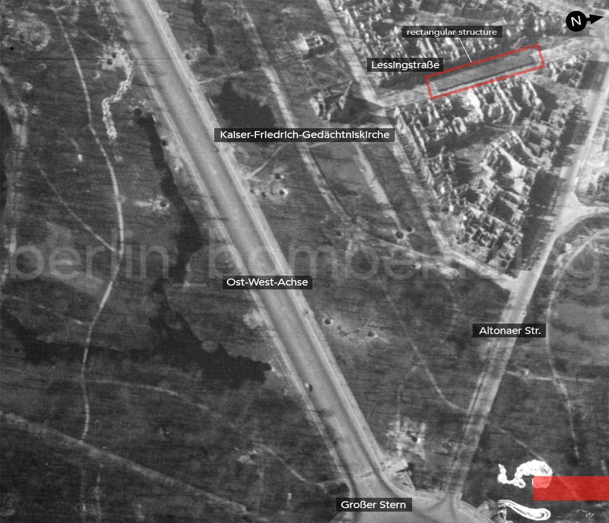 Following close examination of ALL the imagery taken then (Berlin PR images from the war years recorded and available at US and British archives), we can affirm that these are the only structures of this type found in the city.