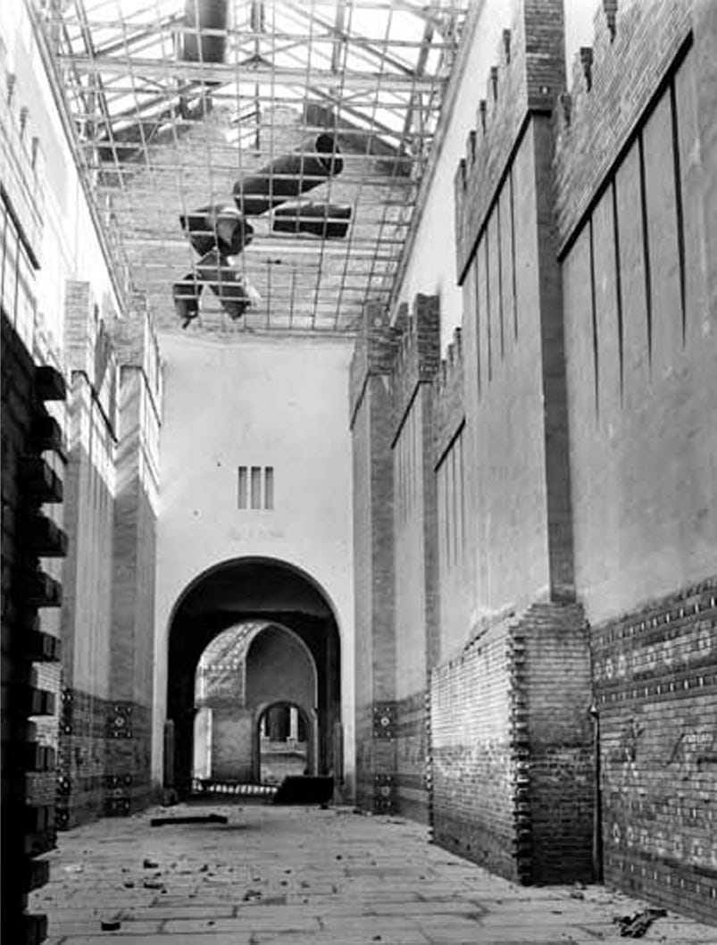 Here, the monumental Prozessionsstraße at the museum which led to the Neo-Babylon Ishtar Gate (or Babylontor) was left in this devastated condition during the war, seen in 1945.