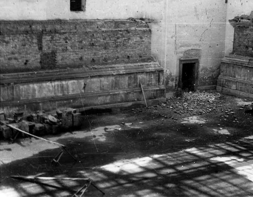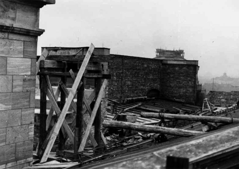 Although the several rooms and halls inside the building been secured from the ‘Bombenkrieg’ in 1940-41 by Nazi authorities with some Schutzhüllen consisting of sandbags and wooden walls, they took severe damage during Allied air raids on the city.