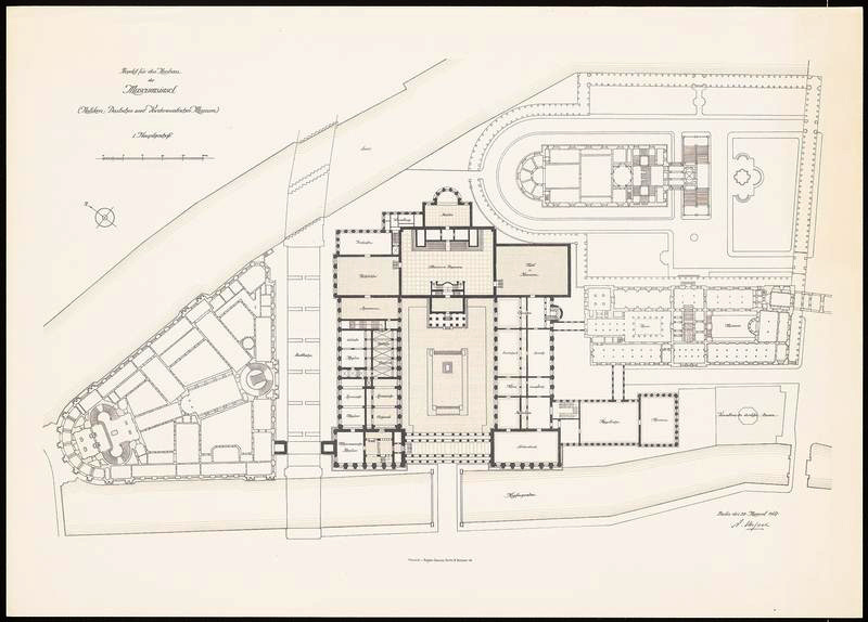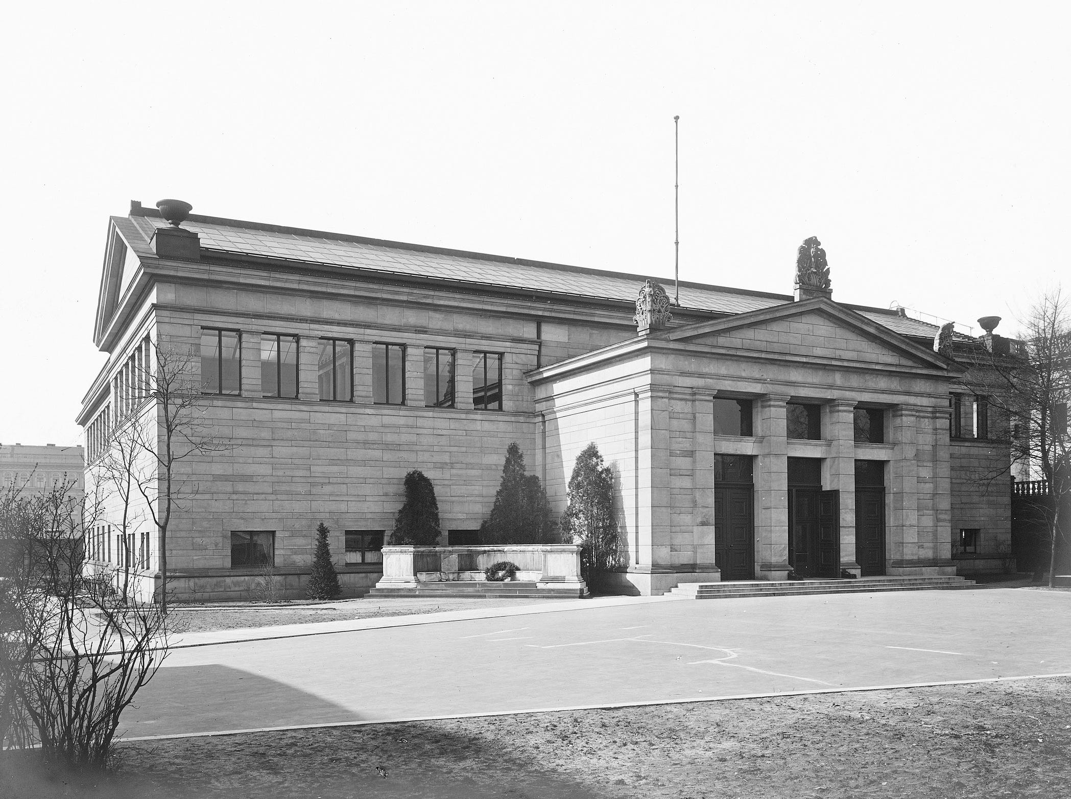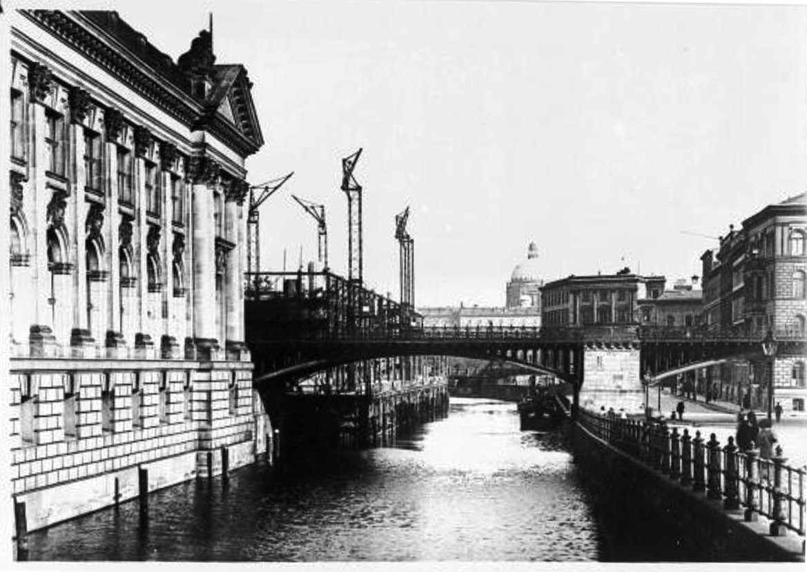 A new museum, designed by Fritz Wolff, was erected and opened in 1901 next to the Stadtbahn at the Museumsinsel to house the newly discovered artifacts. From the beginning, this museum resulted too small and was considered as ‘temporary’ with a planned larger new building to be built at the same location. This early museum was closed and demolished in 1908 due to deteriorating foundation and its sculptures were housed in the eastern columned hall of the adjacent Neues Museum.