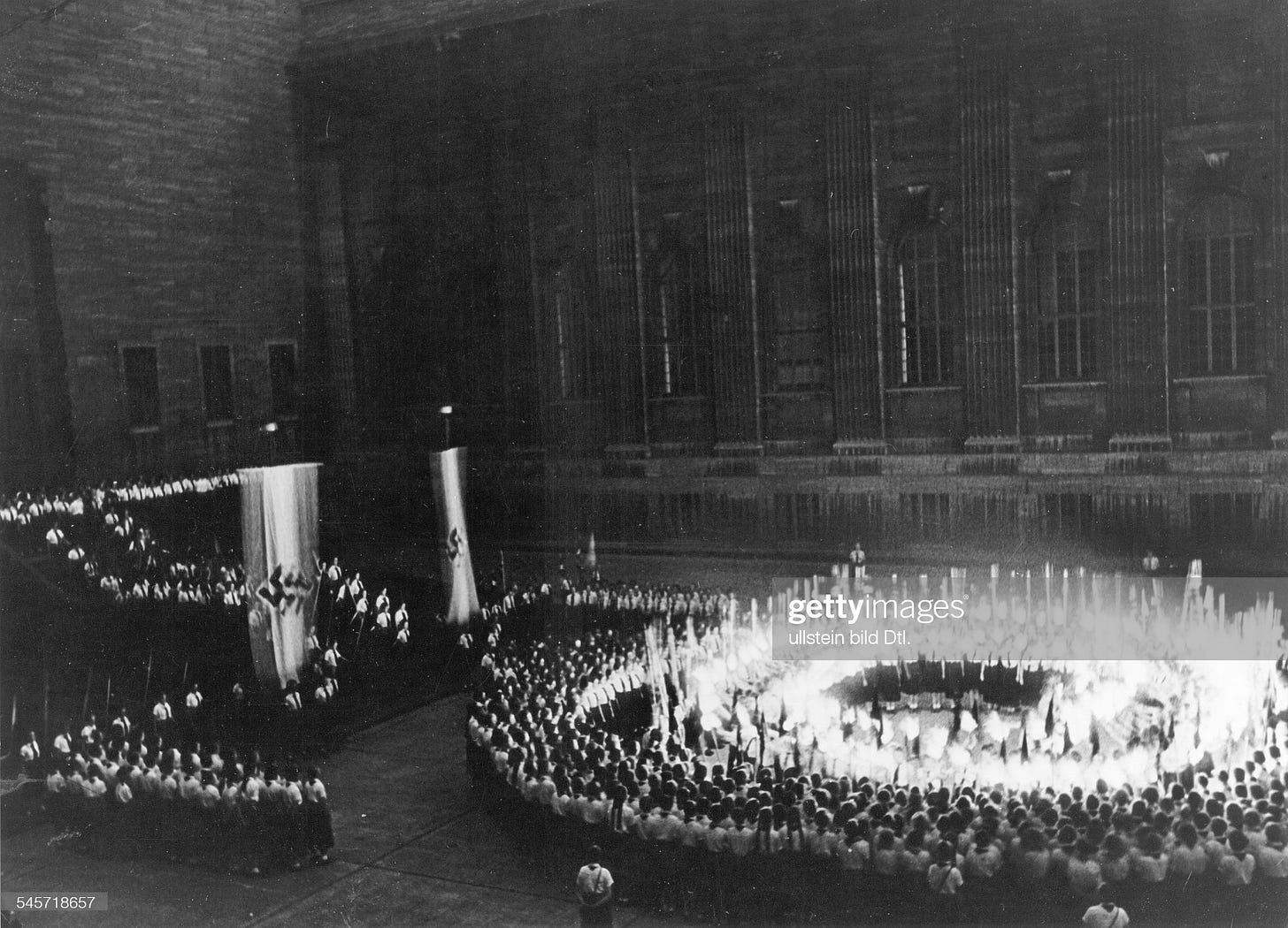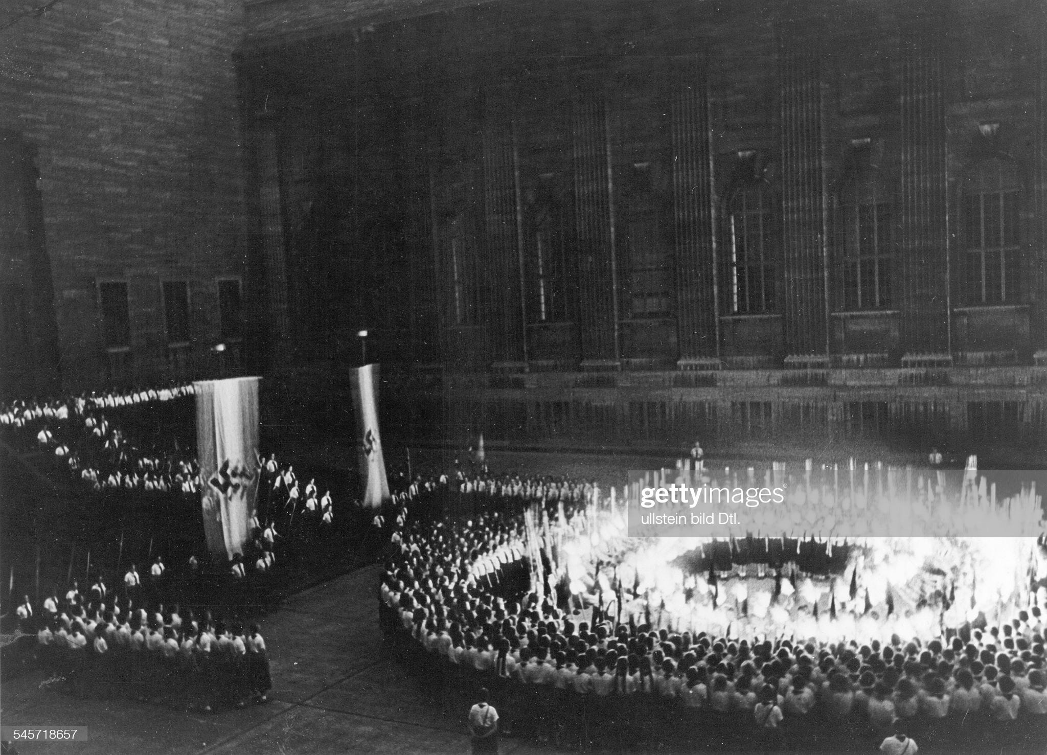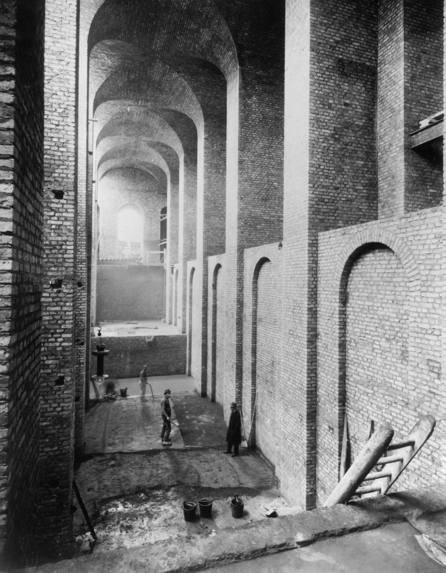 Construction work began in 1910 but First World War outbreak in 1914, the following German crisis and the inflation during 1922/1923 delayed working progress. It was not until 1930 that the complex could be inaugurated but some elements of the building remained unfinished and other never built.