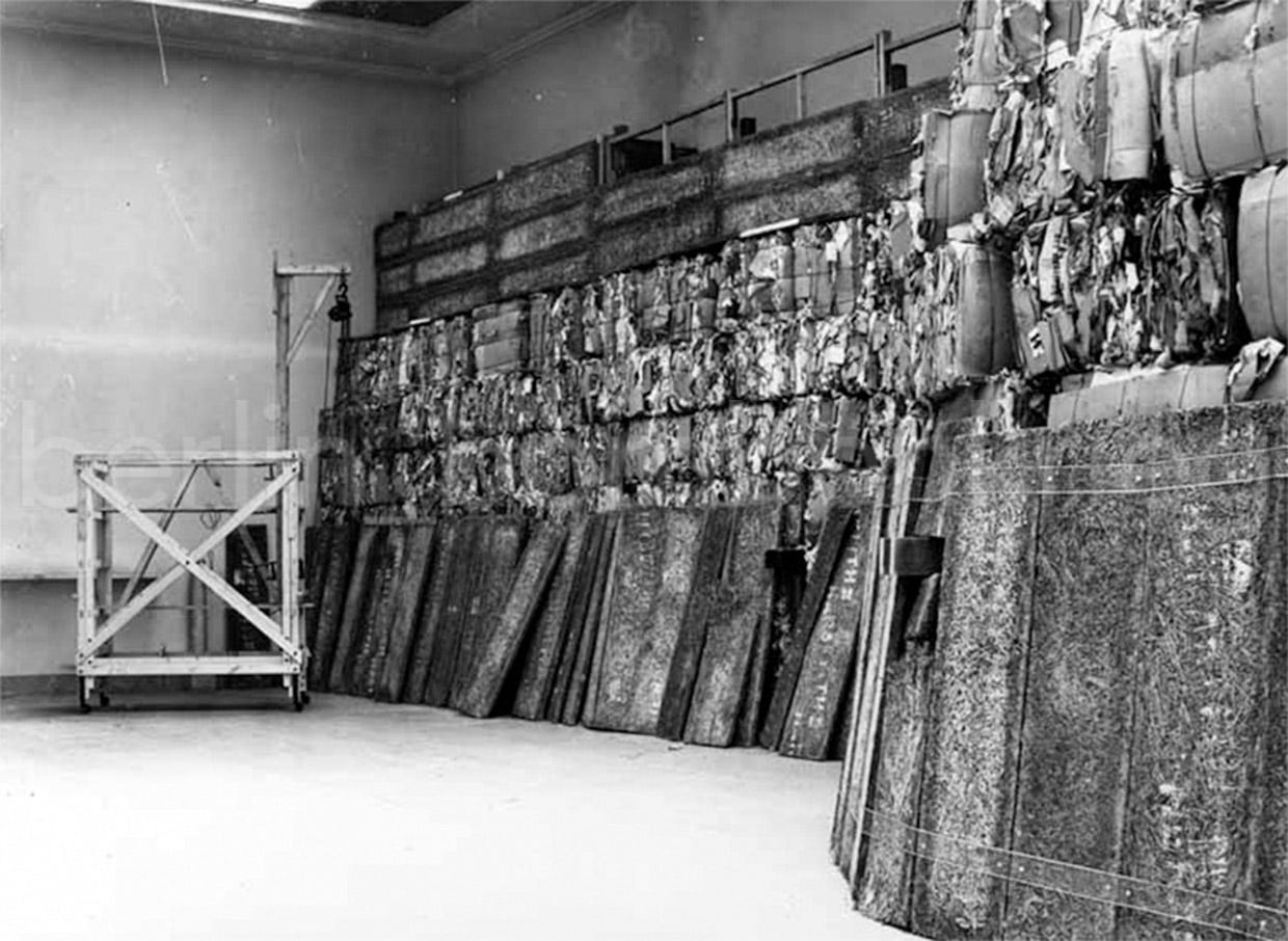 In January 1941, the friezes were dismantled and with the rest of the museum collection stored in crates; at first at the building basement but later were taken to the cellar of the Reichsbank (this included the Priam’s Treasure too, taken from the Martin-Gropius-Bau). When the first Flakturm was built in the Zoo-Tiergarten area months later, the crates were taken to the Großer Zoo-bunker there along hundreds of paintings, gems and other cultural artifacts: the first floor, rooms 10 and 11, took Nefertiti’s portrait head, the Schliemman’s treasures from Troy and the Pergamon panels and dismantled Zeus Altar. From mid 1943 Bomber Command started a stronger and dedicated bombing campaign on Berlin, so Unverzagt tried to secure the rest of the museums’ art objects on the bunker towers along to prepare the evacuation to safer place out of the capital. He took himself residence there too.