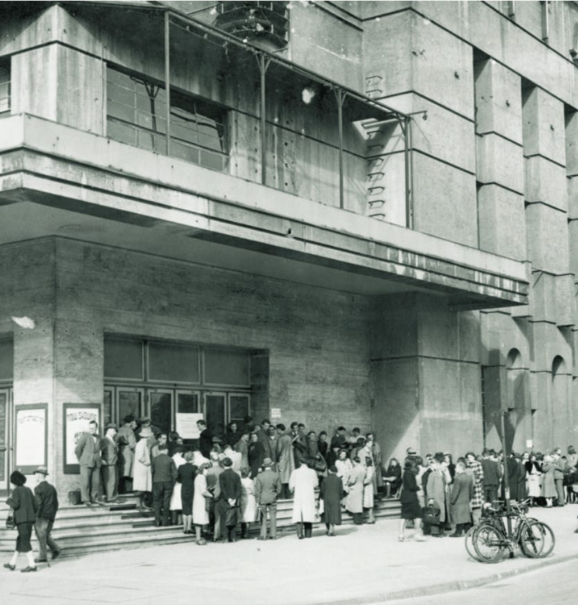 From June 1951 West Berlin opened the Berlinale (International Film Festival in Berlin - Internationale Filmfestspiele Berlin) under the direction of Dr Alfred Bauer and took place in the Titania. It was a cultural-political initiative by American Film Officer Oscar Martay of the American occupation military government to serve as a “showcase of the free world” in the divided city. The opening film was Alfred Hitchcock’s “Rebecca” with American actress Joan Fontaine. In 1953 this cinema was equipped with CinemaScope.