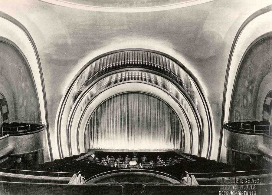 This huge cinema was opened in January 1928 with a big party and the gala premiere of the silent film ‘Der Sprung ins Glück’ (“Jump into Happiness”), starring Italian actress Carmen Boni, Berliner star Hans Junkermann and cabaret stalwart Rosa Valetti.