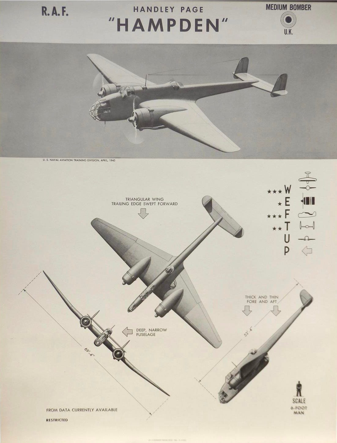 [An American aircraft recognition poster showing the RAF Hampden medium bomber.]
