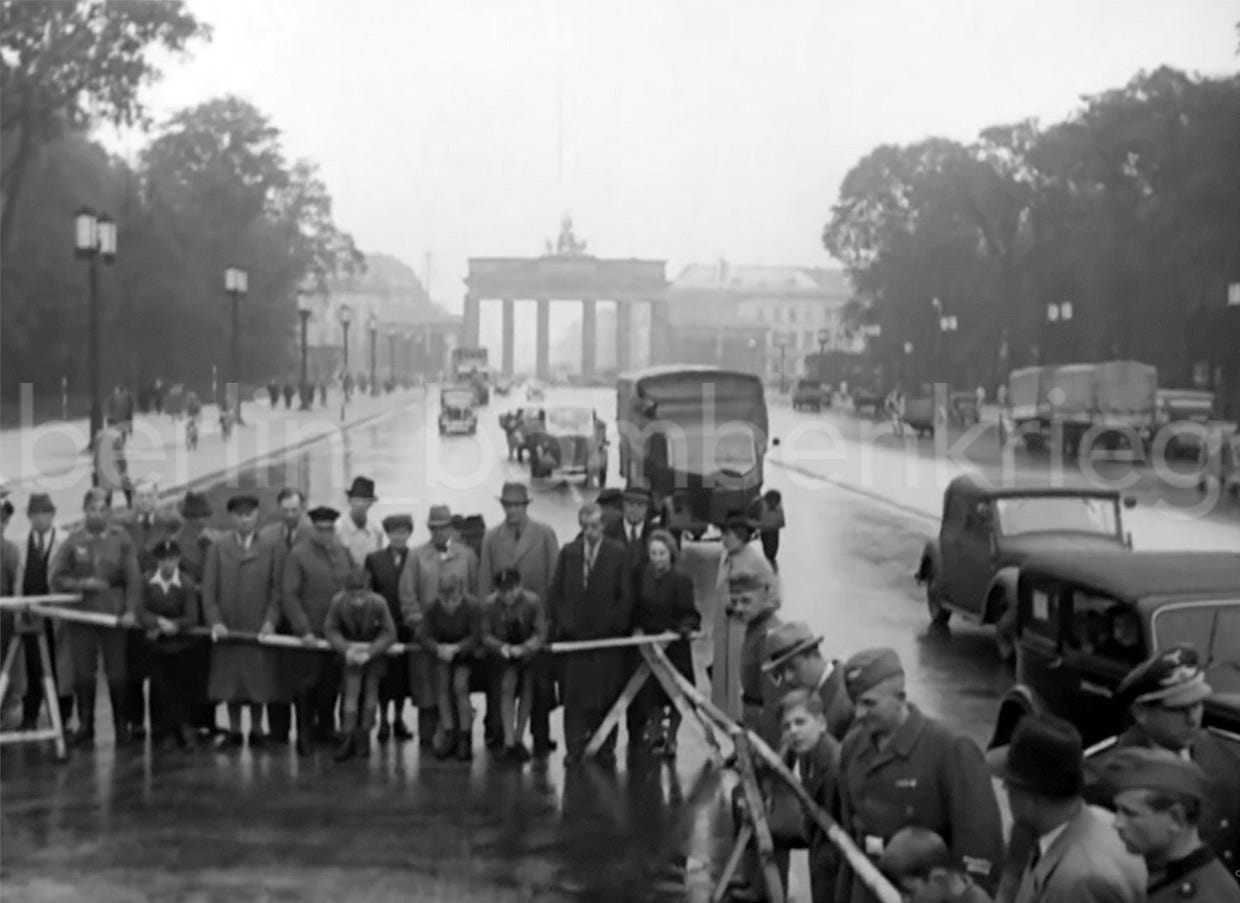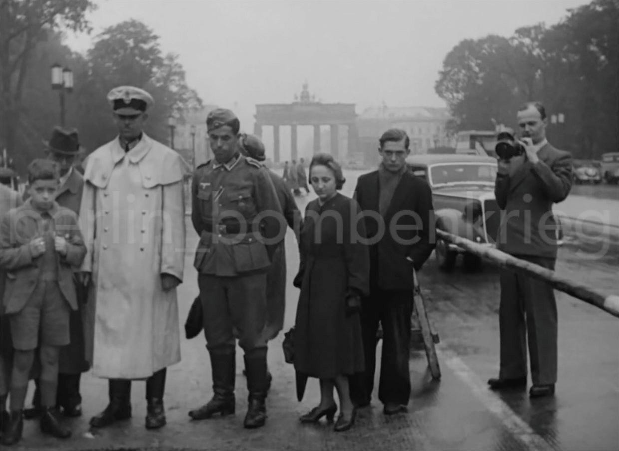 The image, passed by Nazi censorship to Associated Press, was widely shared and reproduced all across the globe by international press in the next few days, its power and impact were far from evident, especially when it had the Brandenburg Gate as a backdrop. Some US papers even accompanied the picture with the caption “Bomb crater in Unter den Linden” and German press evidenced —for Nazi propaganda purposes, of course— the indignity of the Berliners seeing “hospitals, hotels, residential districts and monuments being bombed.“10 In the following days the striking scene, filmed by some PR cameraman quickly sent by Goebbels where the bomb crater was, appeared on a German newsreel all across the country too.
