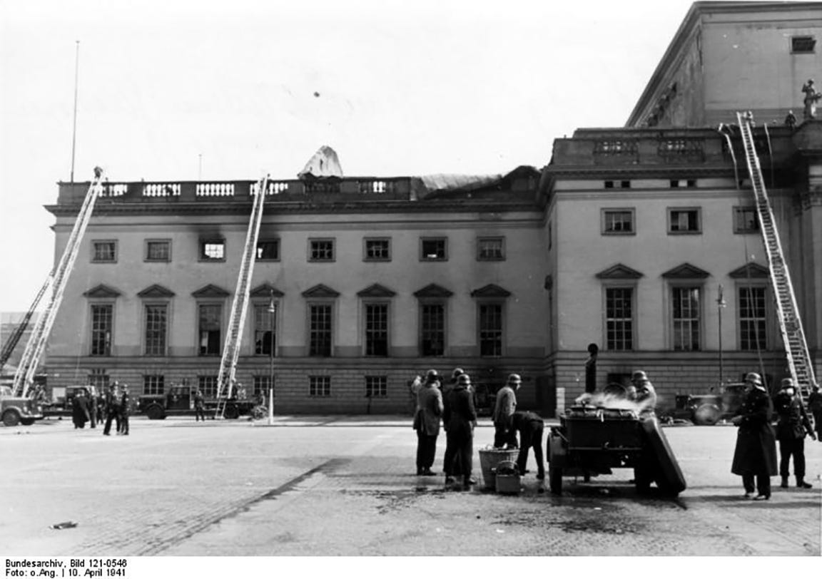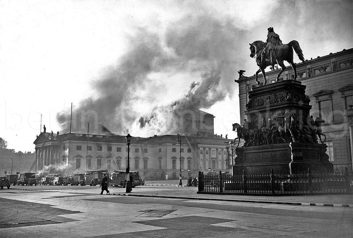 The worst part of the raid damage went to the Staatsoper theatre. The roof construction was partially plunged into the auditorium, the head building in front of the massive stage house actually ripe for the demolition. The correspondent from US news agency United Press reported to New York: “Berlin’s large opera house at Unter den Linden, in which Adolf Hitler often heard Wagner, his favorite music, today lies in smoldering ruins.”