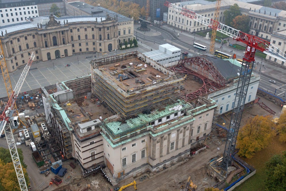 Finally, during 2010-2017, when the original Opera building at Unter den Linden was closed to the public, while undergoing extensive renovations. Aside from occasional avant-garde performances in the construction site, the bulk of the season’s offerings over the reconstruction period have taken place at the Berliner Schillertheater (Bismarckstraße) in Charlottenburg, only a block away from its main competitor, the Deutsche Oper Berlin.