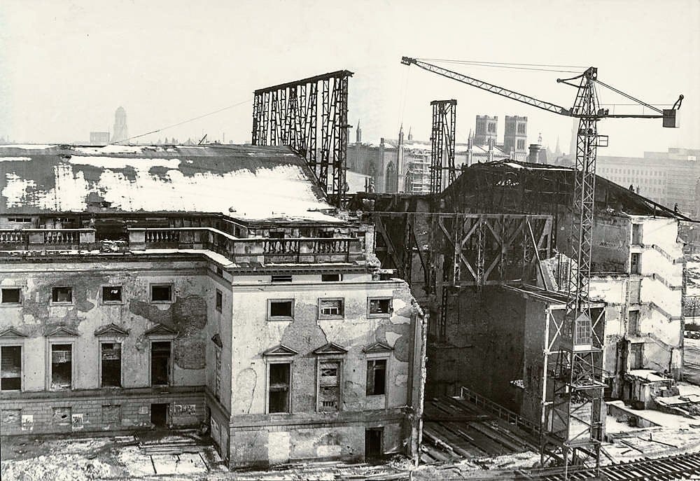 These are views of the works’ progress during 1951-52 taken from the adjacent Bebelplatz. The partly destroyed Dom can be seen behind in the first picture.