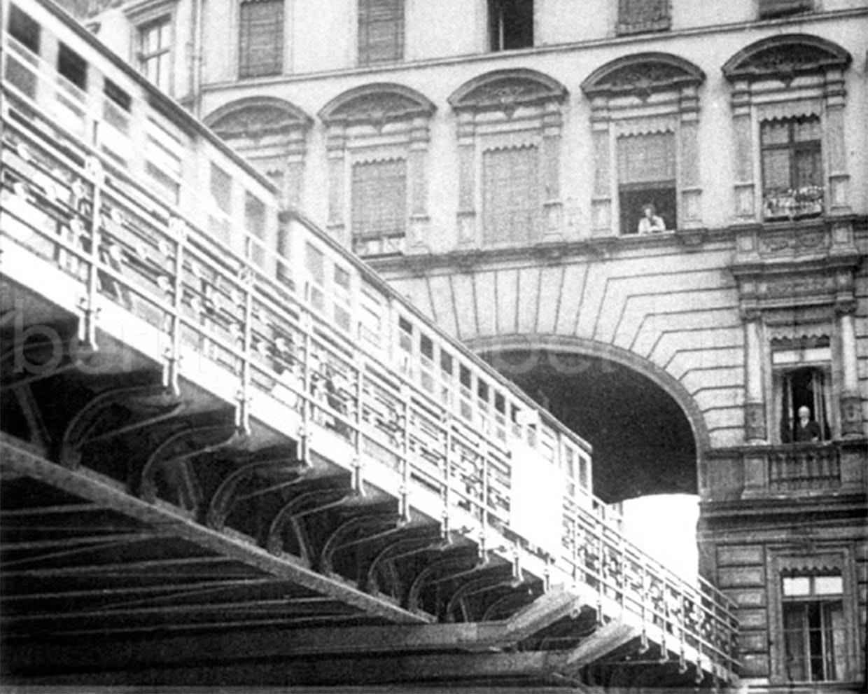 One of the most curious and eye-catching pictures from old Berlin is the one that shows an elevated train running through a “hole” in the middle of a residential building. This image was taken in the early 1900s at Dennewitztraße in Berlin-Schöneberg district, in the western side of the city. Sadly, as other Berlin important and unique landmarks it didn’t escape destruction during Second World War, being hit by the heavy RAF bombings in fall 1943 and never rebuilt.