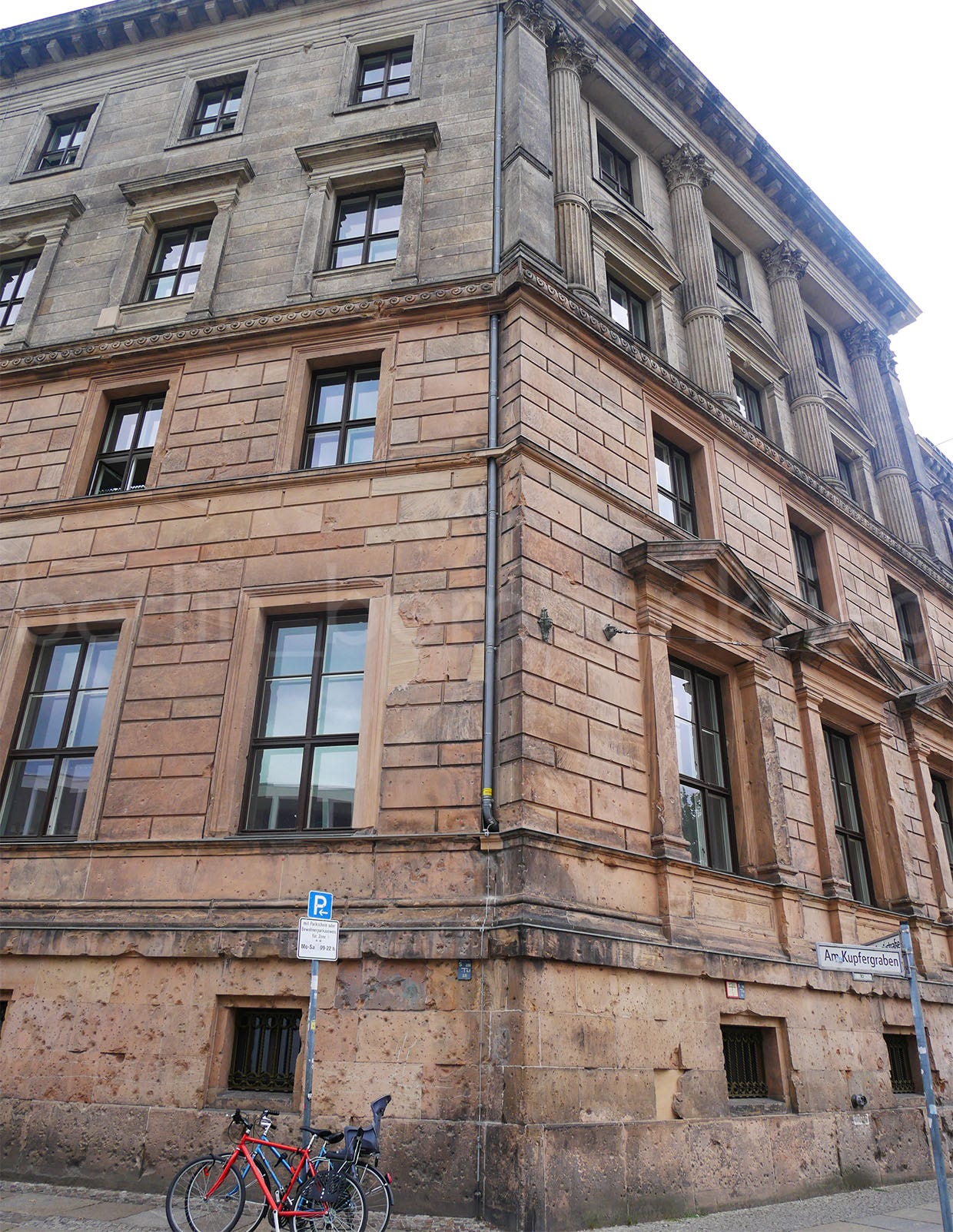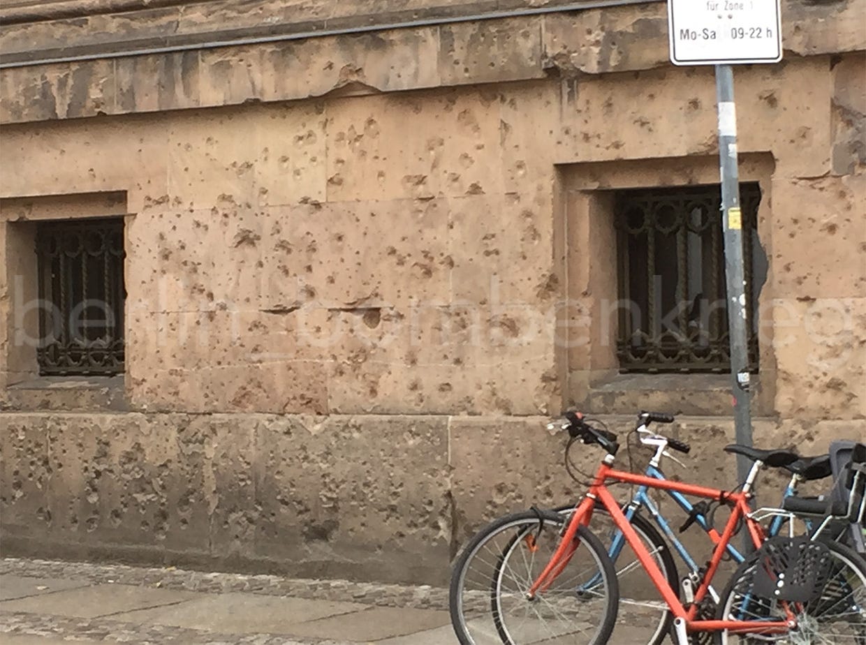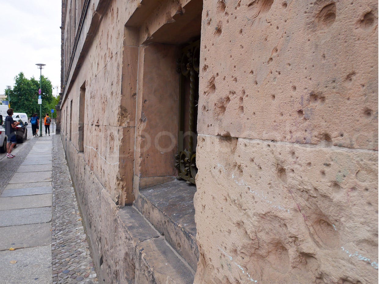 This battle-damaged building is located at Am Kupfergraben Ecke Dorotheenstraße nr 1 in Berlin-Mitte district, today home of the Humboldt-Universität zu Berlin School of Business and Economics. With its walls full of signs of war, smoke and fire from Luftangriffe by British RAF and American air-raids, and shrapnel from howitzers and splinters due to street-fighting with the Soviets during the final Battle of Berlin in May 1945, it is an evident survivor of the destruction experienced by the city. The heavily damaged building was restored and cleaned a few years ago, helping in preserve it but in the process erasing forever its original state, much more blackened and holed, a true-live survivor of the aerial bombings and battles suffered by the city during the Second World War which now has lost its past.