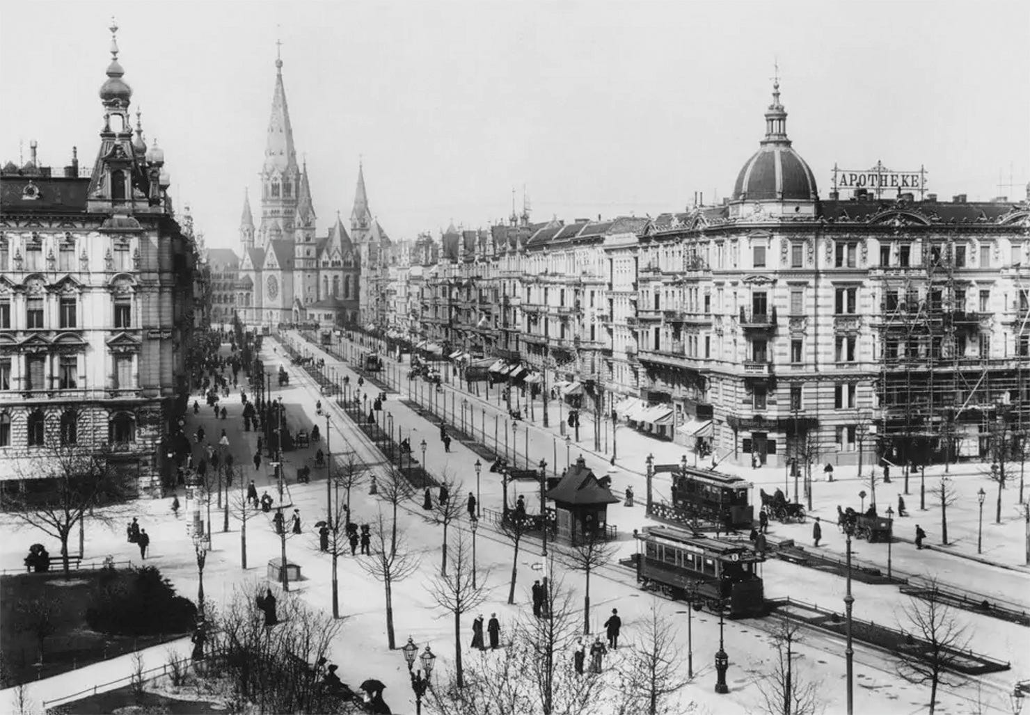 Located between Nollendorfplatz and Auguste Viktoria Platz (today’s Breitscheidplatz), Wittenbergplatz is one of the best known plazas of the city of Berlin. It was laid out between 1889 and 1892 in the course of urban development in the western suburbs of Berlin’s Wilhelmine Ring. The square was named after the adjacent Tauentzienstraße (from General Bogislav von Tauentzien) who had received the honorific title von Wittenberg after the storming of the French-occupied town of Wittenberg in February 1814. With the Berlin’s municipal reform effective in April 1938, Wittenbergplatz became part of the Schöneberg district.