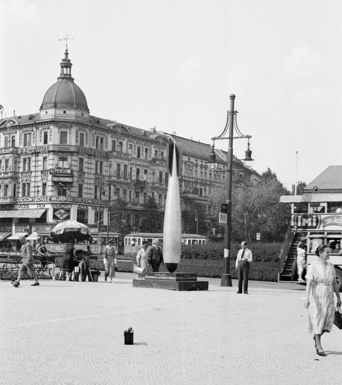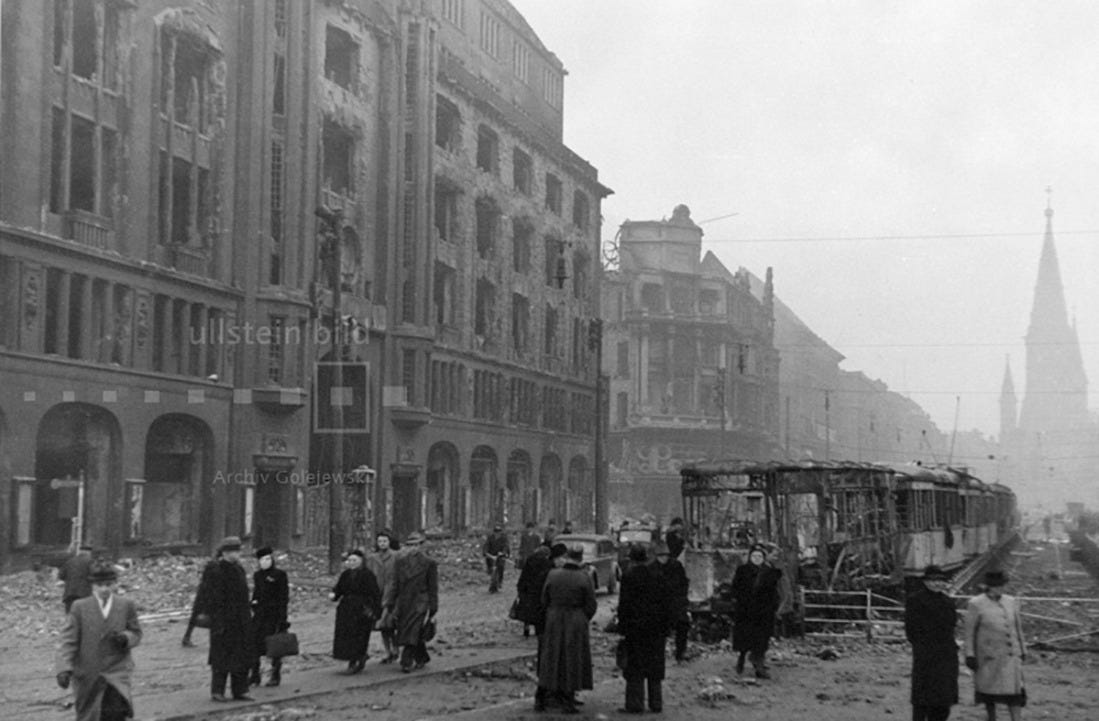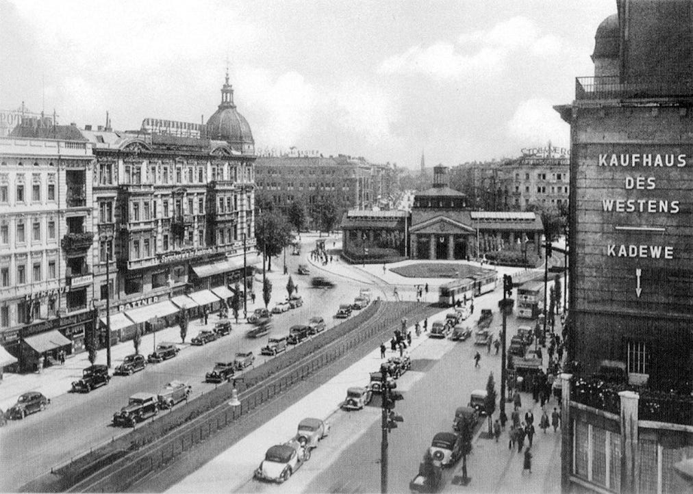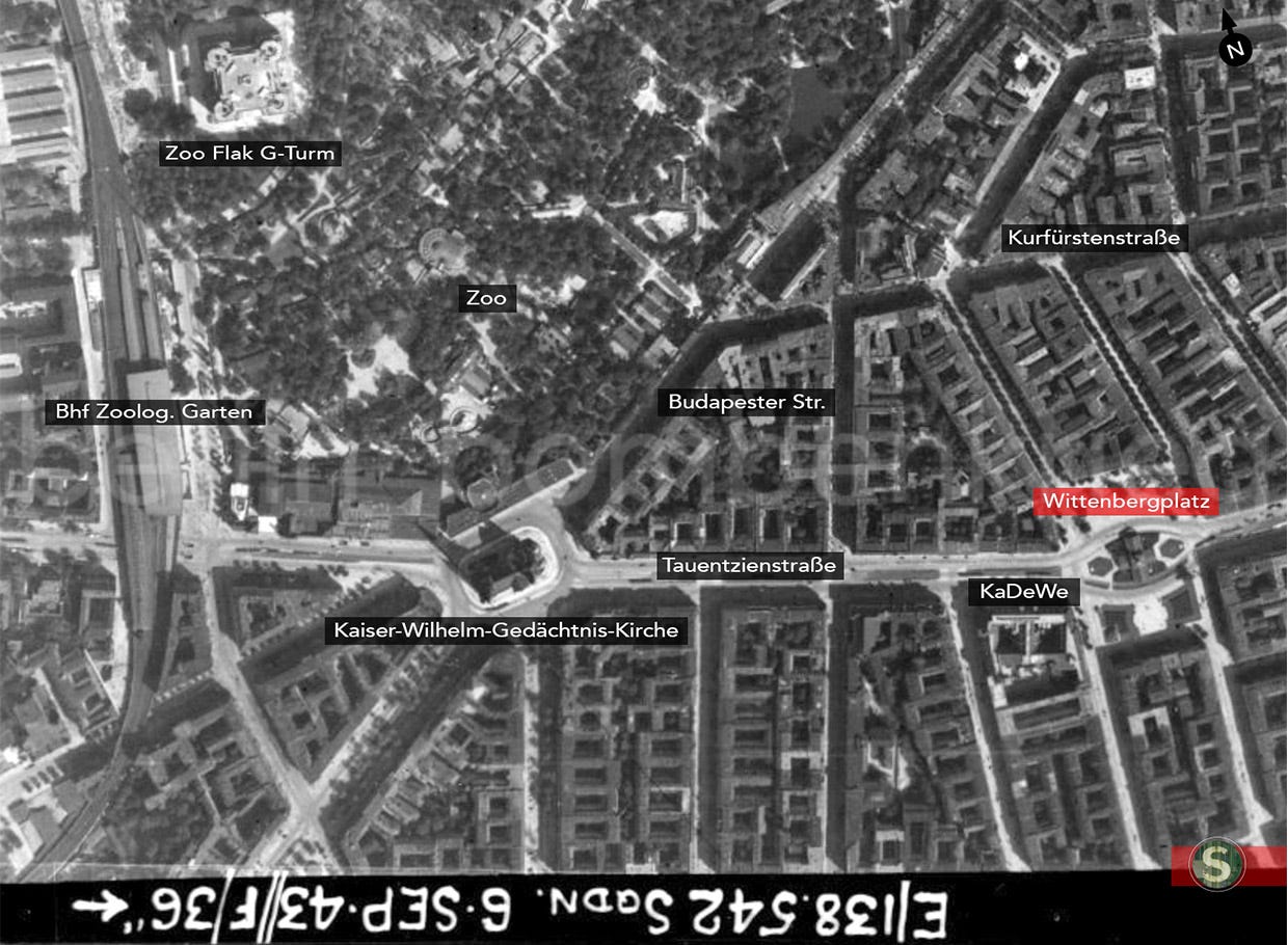 Furthermore, the square was hit by the USAAF daylight offensive too, when the underground tunnels between U-Bhf Wittenbergplatz and Zoo were penetrated by direct hits on May 8, 1944 (403 American heavy bombers attacked), which left Linie A trains out of service for several days.