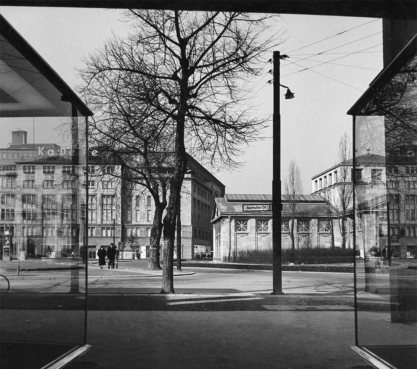 A view of the ruined Wittenbergplatz 4 Ecke corner Bayreuther Straße 8, taken by Herwarth Staudt in October 1950. This building was destroyed by a bomb dropped by an RAF Mosquito on the night of 29/30 January 1945, wounding four people. Photo: Museen Tempelhof-Schöneberg/Archiv